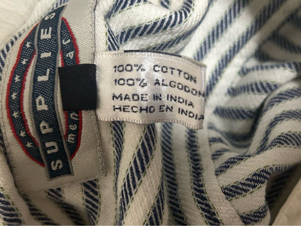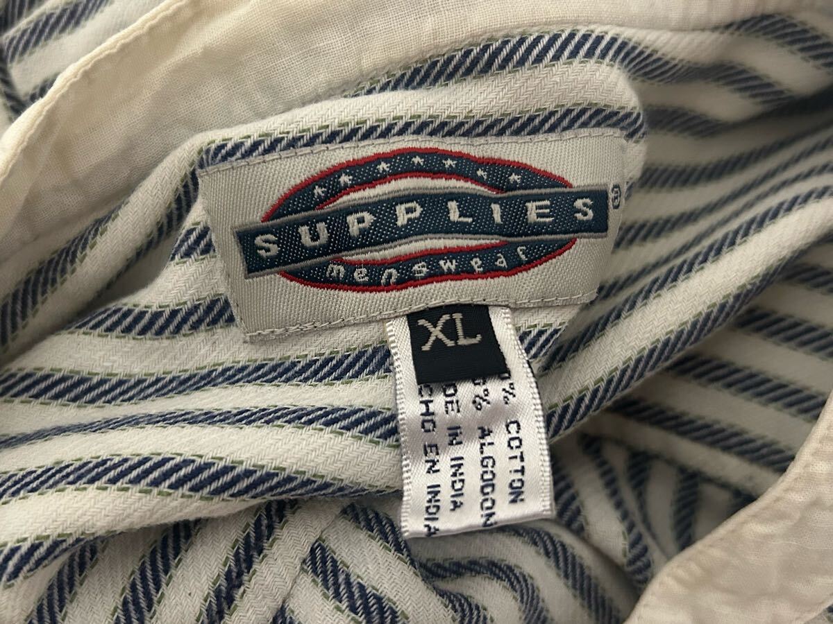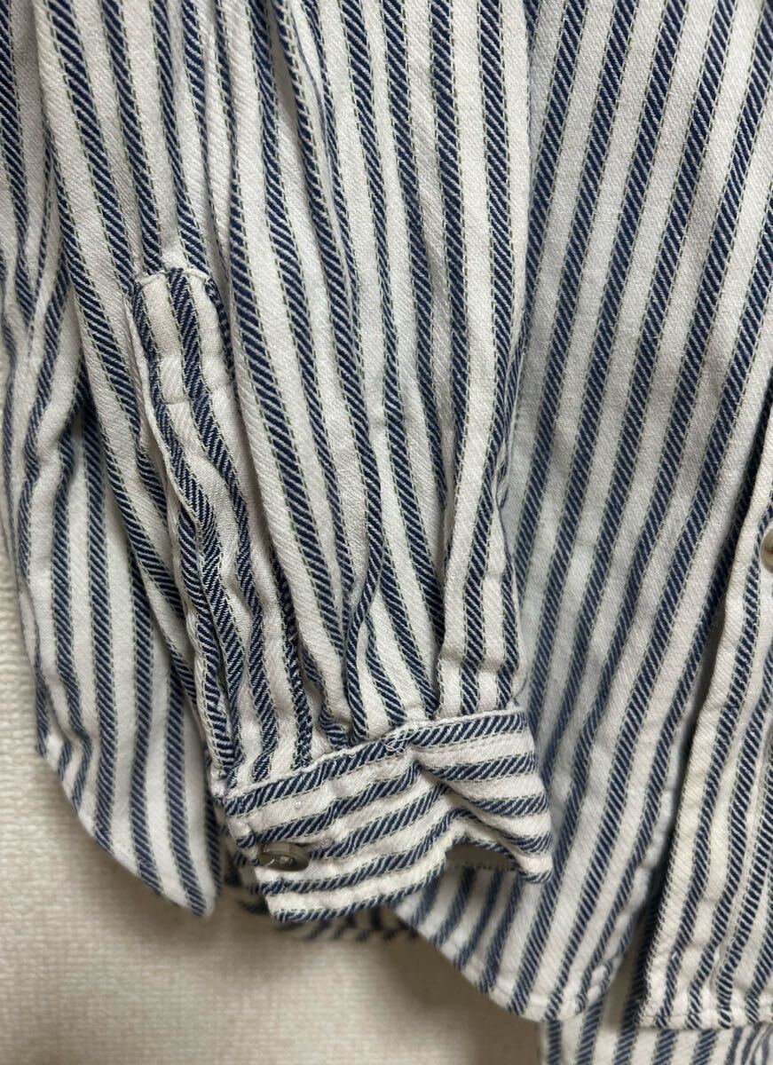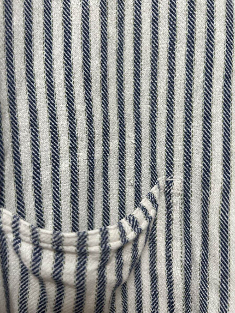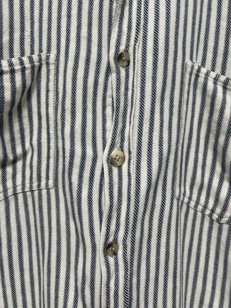 90's USAヴィンテージ ノーカラー ストライプ柄長袖シャツ