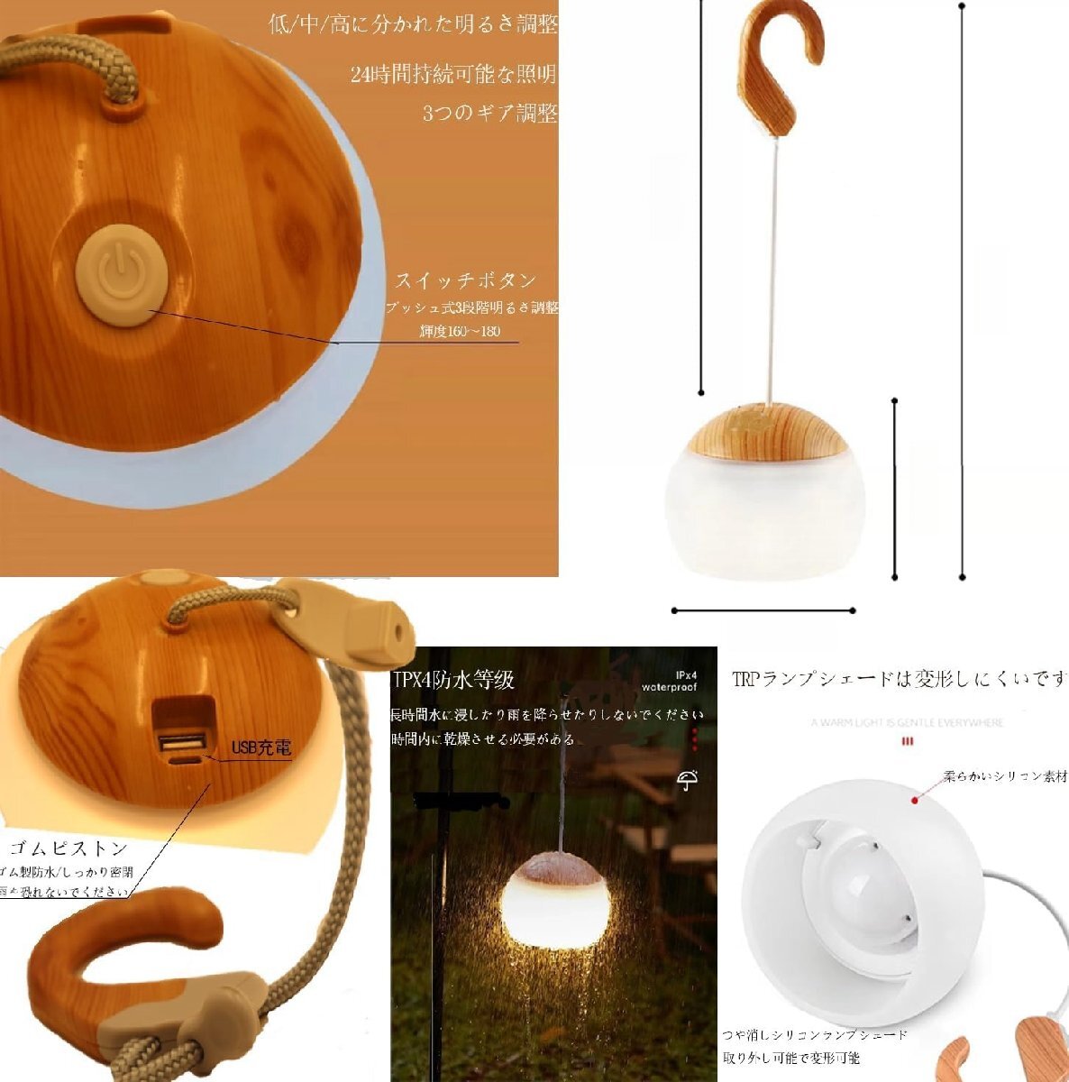 キャンプランタン LEDランタン 3色切替 3600mAh USB充電式 テントライト 小型 アウトドア 携帯 キャンプ 防災 停電用 (1個) hw156