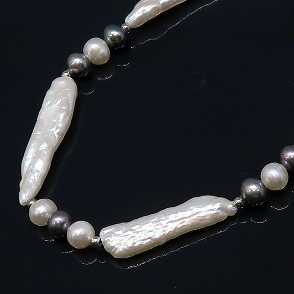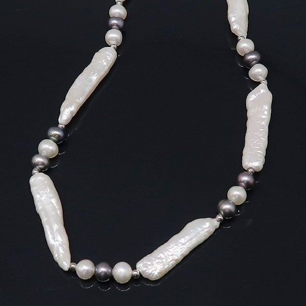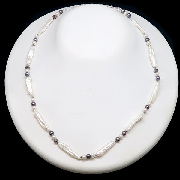 DKG★送料無料 PNC41★ 美品 SV925 シルバー 淡水 パール 真珠 スティックパール ネックレス 約46cm ケシパール パールネックレス