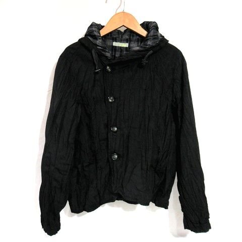 ☆美品☆i+mu*センソユニコ*絞りデザイン*フーデッド*ジャケット*Sensounico i+mu*レディース*通年*サイズ40*黒*裏地チェック柄 |