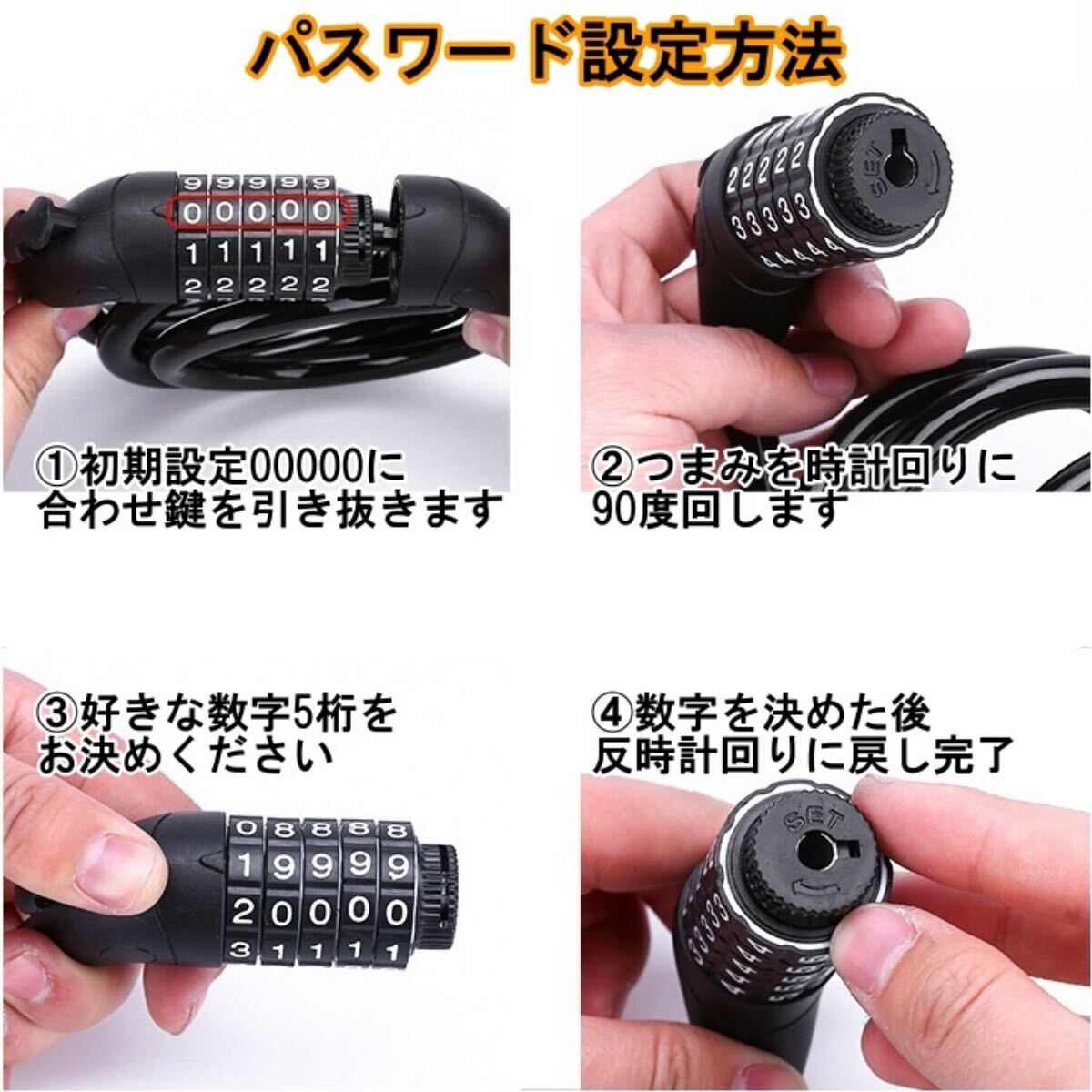 自転車 鍵 ワイヤーロック チェーン ダイヤル式 ナンバー カギ 5桁 ダイヤル ワイヤー 盗難防止