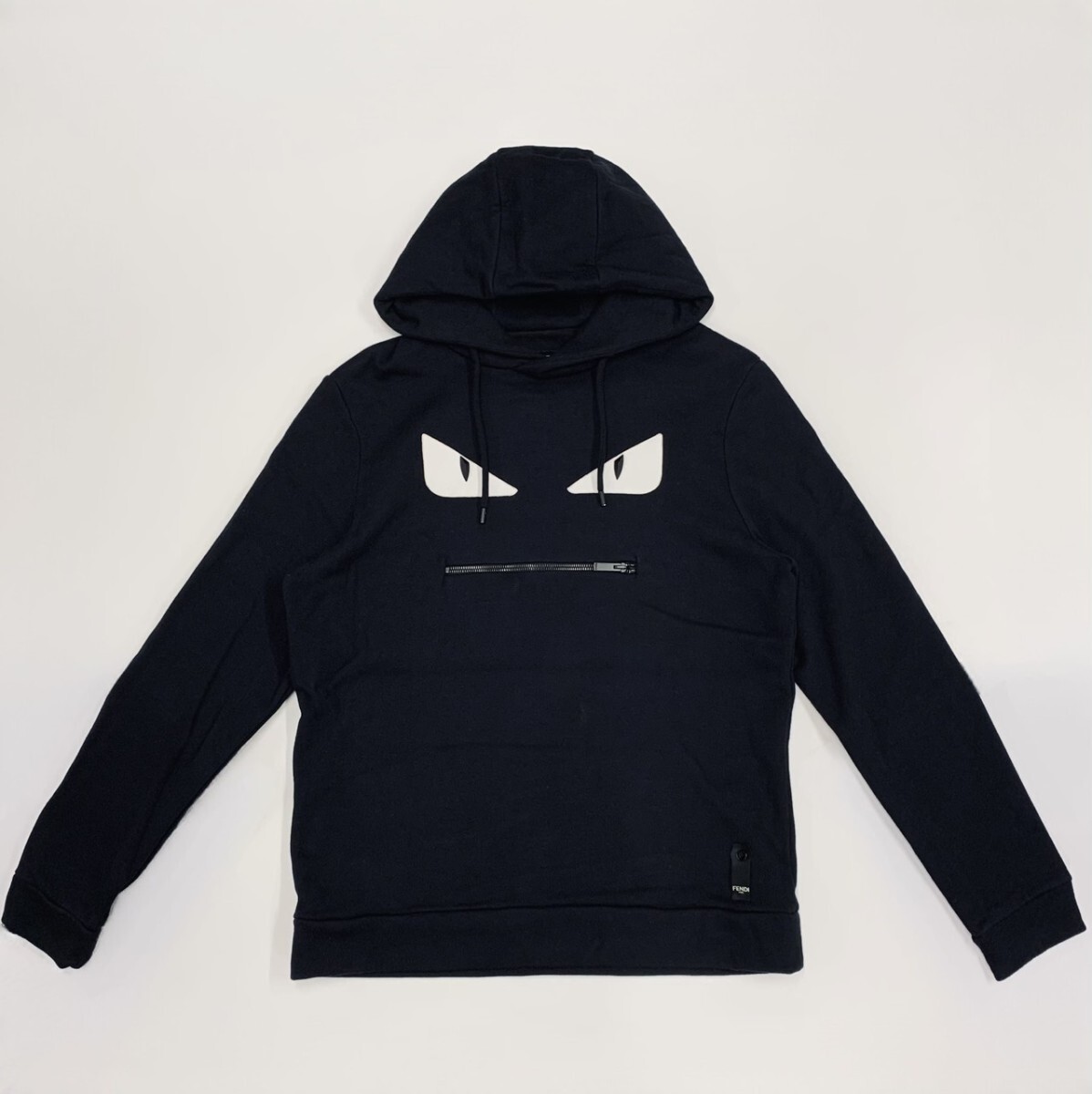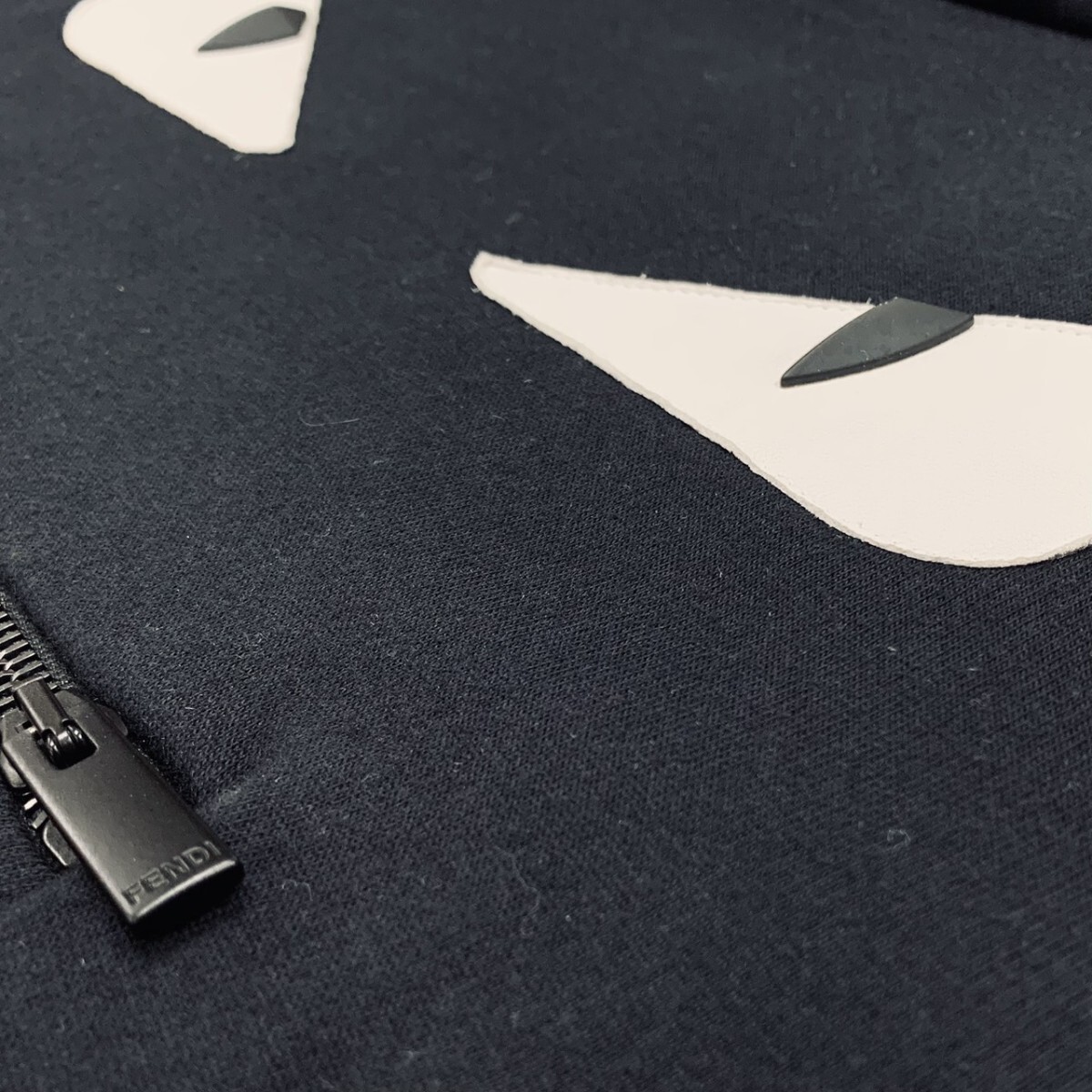 FENDIのモンスターパーカーです。厚手すぎず春秋は中にTシャツを着て着用や、冬はアウターの中に着用してもらう事で3シーズン着回し可能です。 モンスターの目の部分にはレザーを採用されてるので高級感があります。