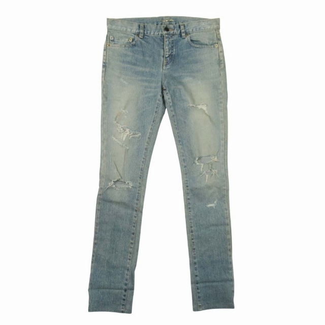 美品 2016年製 サンローラン パリ SAINT LAURENT D01 W / SK-LW デストロイ加工 スキニー ジーンズ デニム パンツ 26 インディゴ 396698