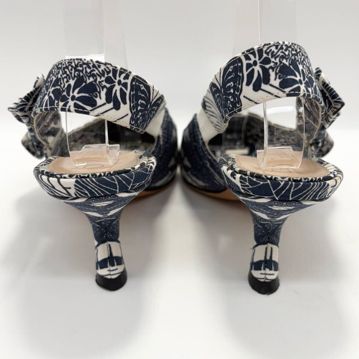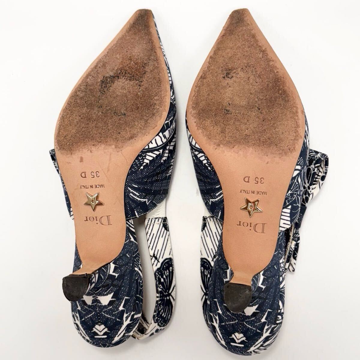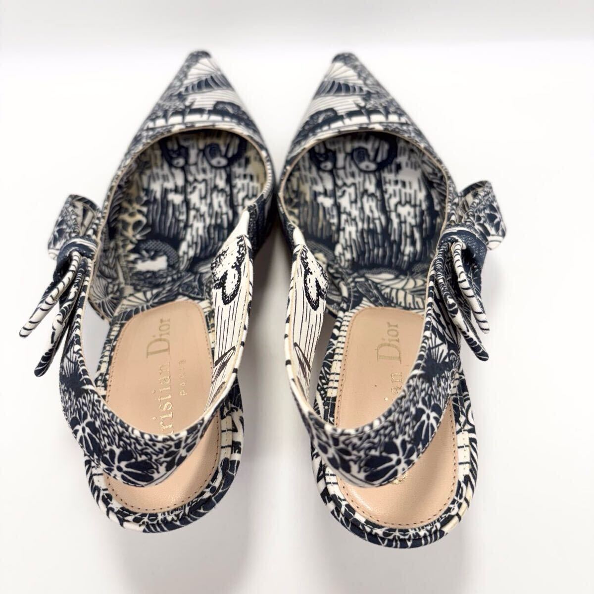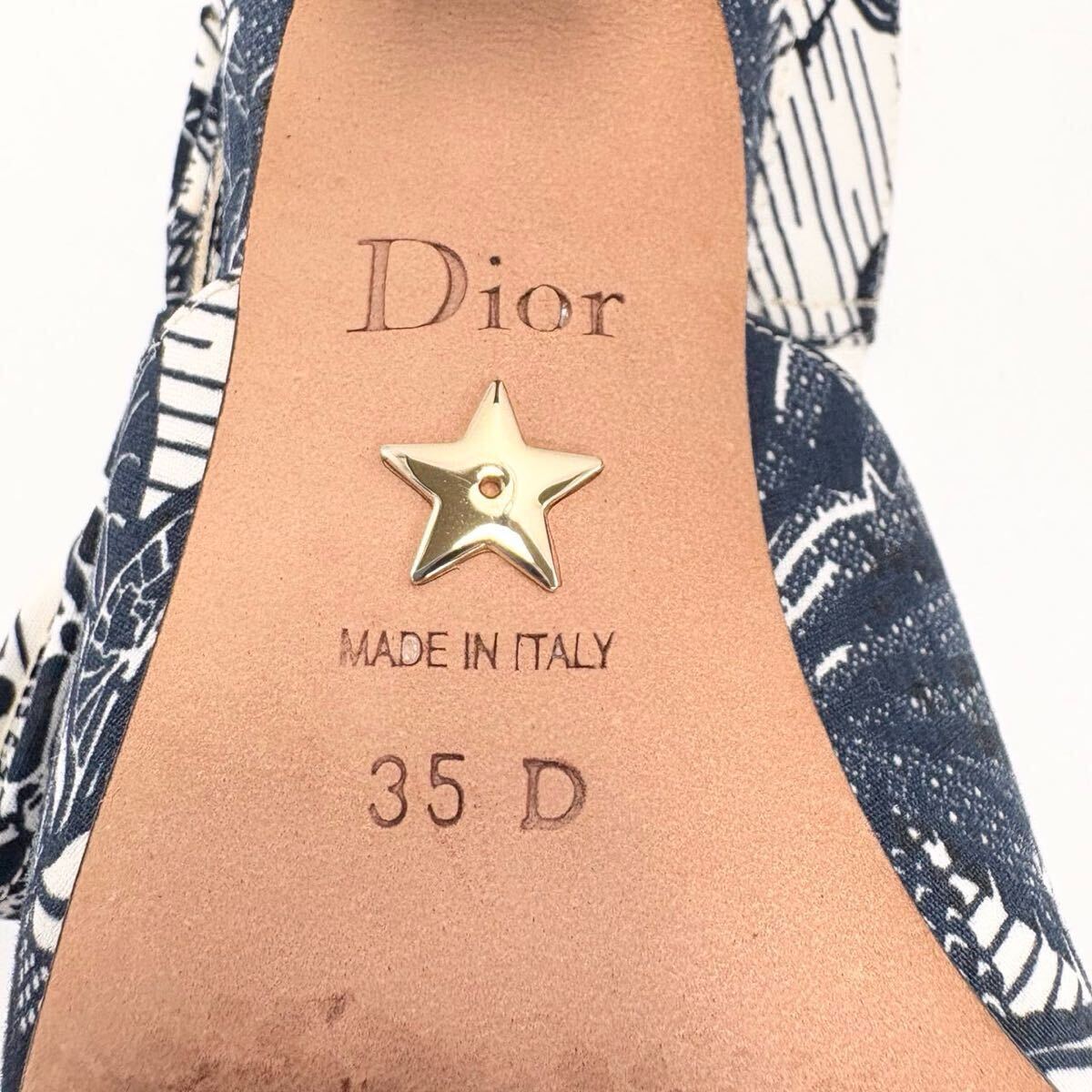 Christian Dior 未使用近い Tile de Jouy スリングバック パンプス サンダル ミュール シューズ 靴 35D ブルー×ホワイト Italy 保存袋付き