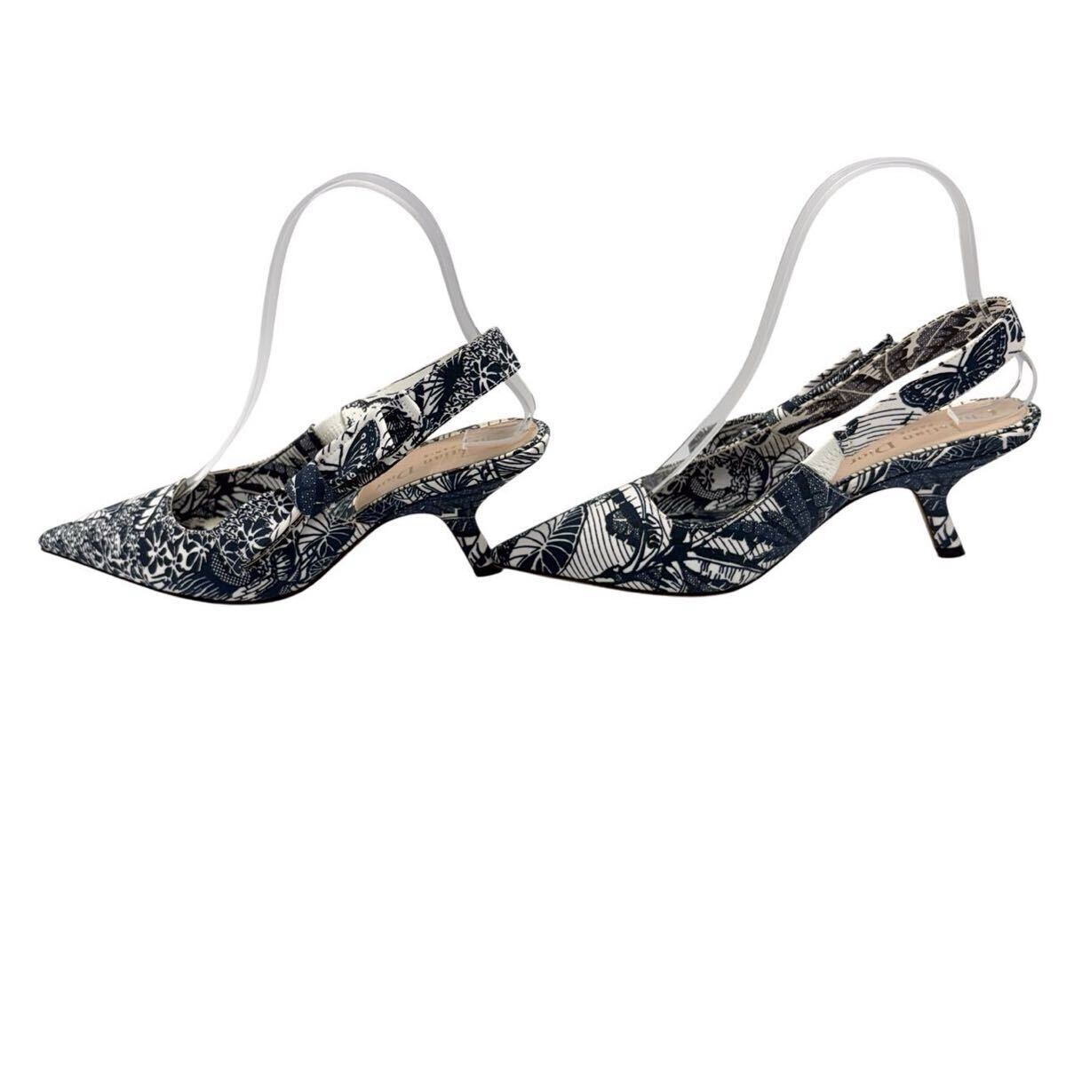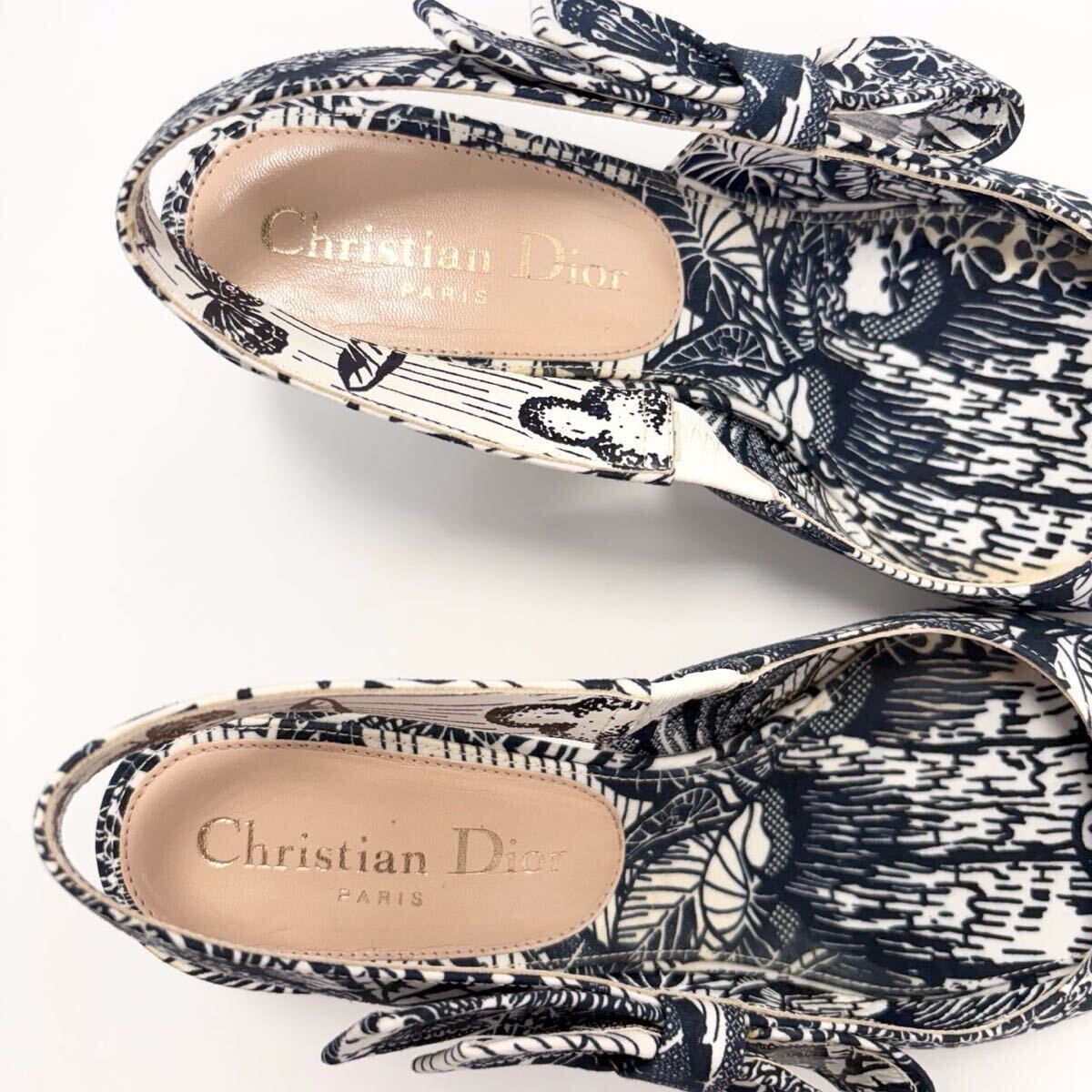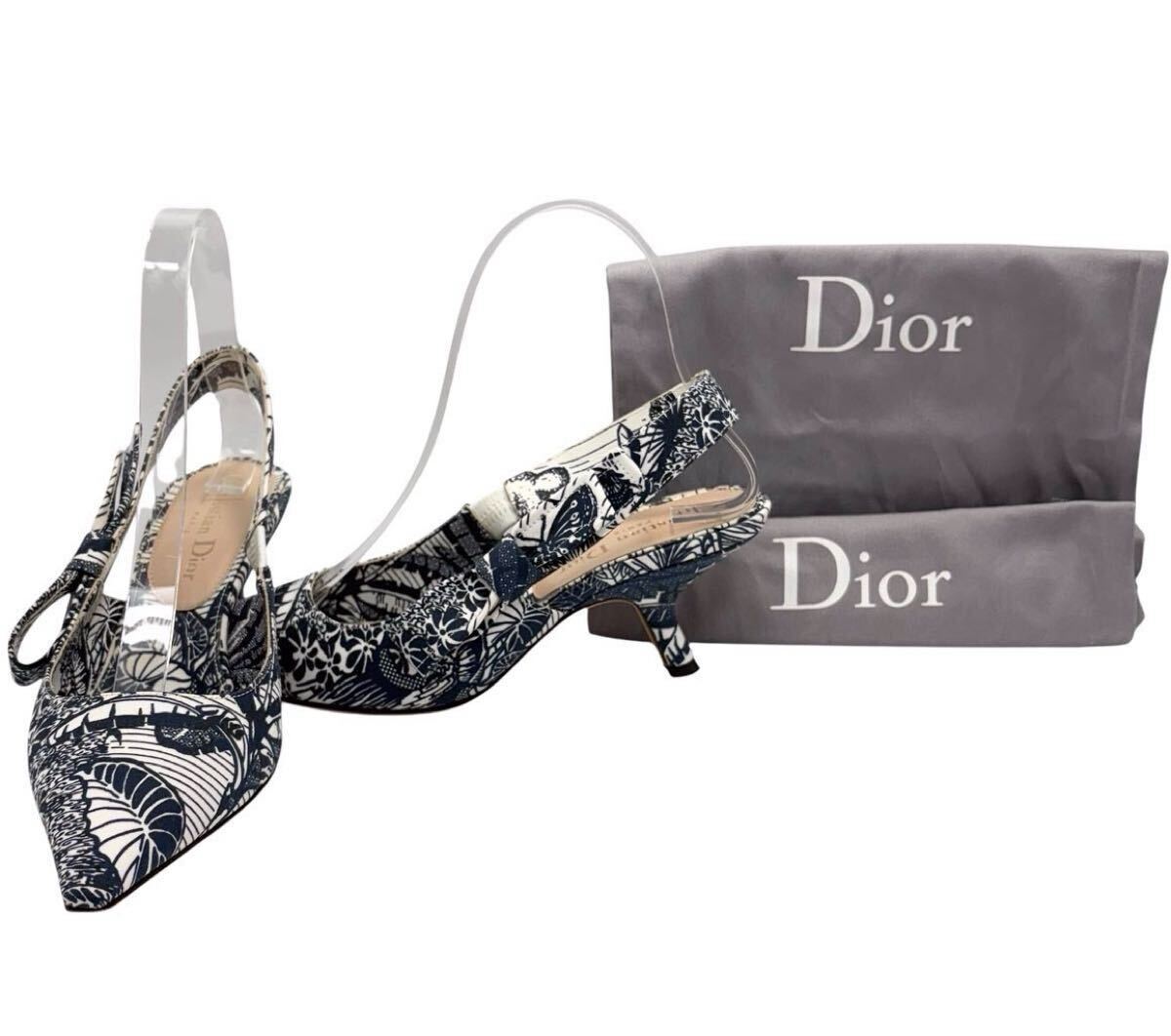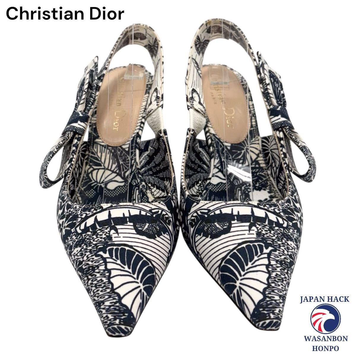 Christian Dior 未使用近い Tile de Jouy スリングバック パンプス サンダル ミュール シューズ 靴 35D ブルー×ホワイト Italy 保存袋付き