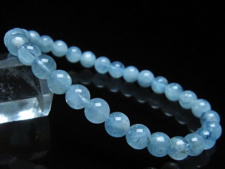 ■商品名: アクアマリンブレスレット ■商品ID: T35-20089 ■商品重量:約 9.8g ■商品サイズ:内周約:160mm(±5mm)粒直径約:6mm(±0.5mm) 【アクアマリン(藍玉)】 3月の誕生石として知られた天然石です。 ベリル(緑柱石)の一種のためエメラルドやモルガナイト、レッドベリルなどと同じグループにあるパワーストーンで、アクアマリンはブルーベリルの別名を持ちます。 「アクアマリン」という名称の語源はラテン語で水の意味のアクアと海の意味のマリナスに由来しています。 古代ローマの漁夫たちが海難防止と豊漁のお守りにしていたことや、海の精の宝物が海底から浜辺に打ち合げられて宝石になったとされているという言い伝えがあり、アクアマリンは旅の安全のお守りとして一つは持っておきたいストーンです。 また、アクアマリンは穏やかさと包容力をもたらし、免疫力を高め体の不調を整え精神面と体調面でのサポートをしてくれるとされています。 さらには夫婦愛を高め恋人同士のすれ違いを無くすとされ、安産や子宝に恵まれる効果もあるともいわれています。 このように幸せな結婚を象徴する事から、アクアマリンは結婚や出産の贈り物におすすめです。 ⇒ アクアマリンをもっと詳しく ◆ワンポイント情報 アクアマリンの劈開は不明瞭、モース硬度は7.5~8となり十分な硬度がありますのであまり取り扱いに神経質になる必要はありませんが、石自体の内部にあるクラックやインクルージョンに力や衝撃が加わると割れてしまう可能性もある点にご注意下さい。 |