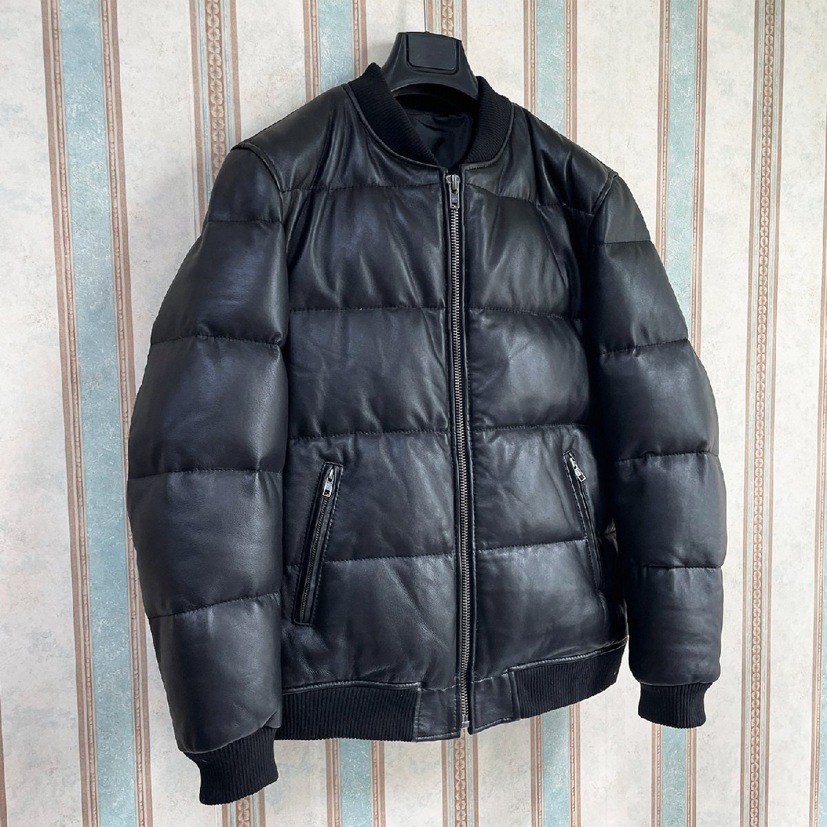 最高峰 定価13万 FRANKLIN MUSK・アメリカ・ニューヨーク発 レザー・グースダウンジャケット 上級羊革 厚手 防寒 ライダース 革ジャン 4