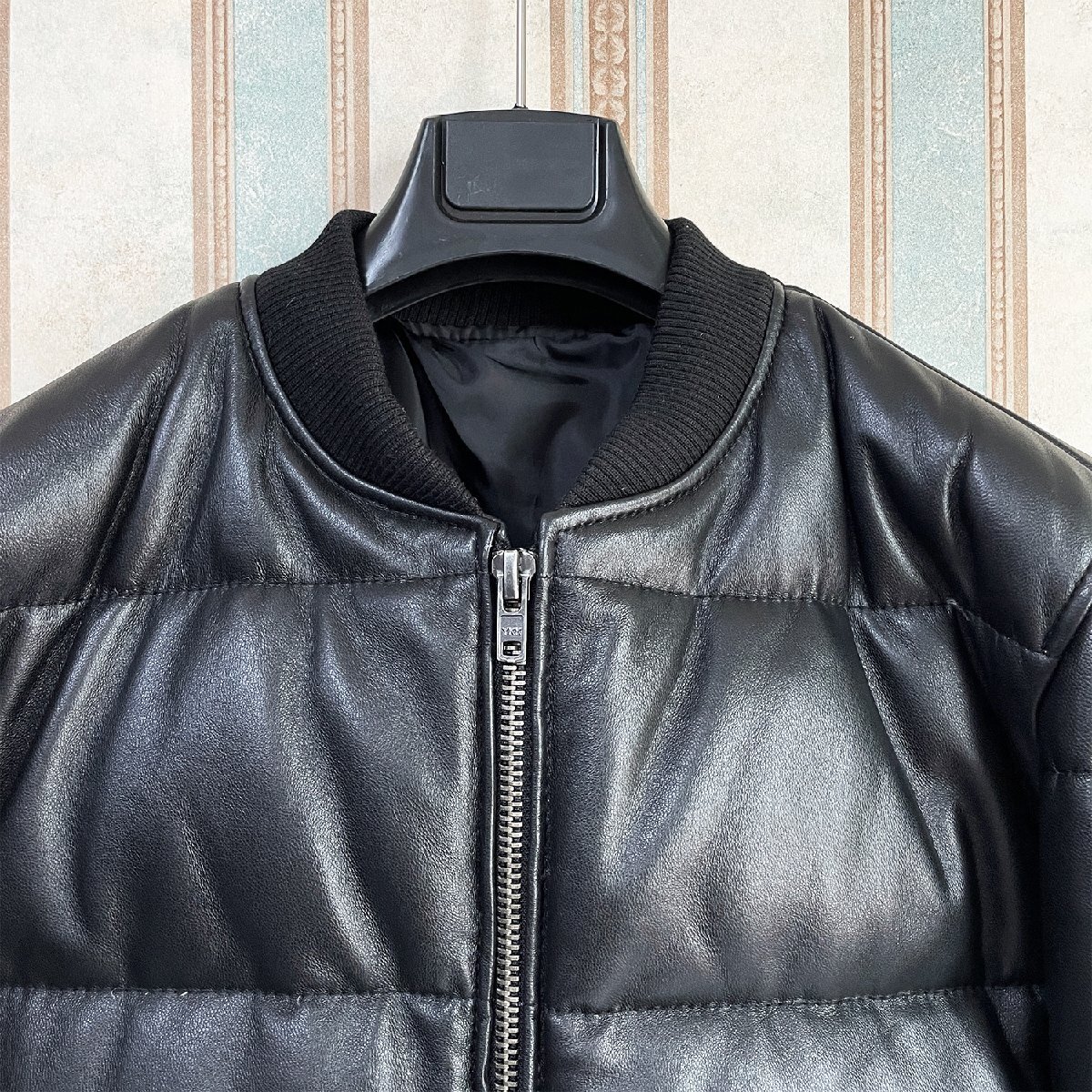 絶妙な光沢感に柔軟性とタフさを兼ね備えた羊革を使用した一着。滑らかな肌触りも嬉しいポイントです。程よい革の厚みと、柔らかく吸いつくような触り心地が特徴です。裏地は高品質なグースダウンを贅沢に使用して、羽毛が多くの空気を取り込むことによって空気の層ができ、体温を逃さず冷たい外気をシャットアウト!!程よいボリュームがあり保温性が高くて、真冬でもお使いいただけるライダースジャケット。