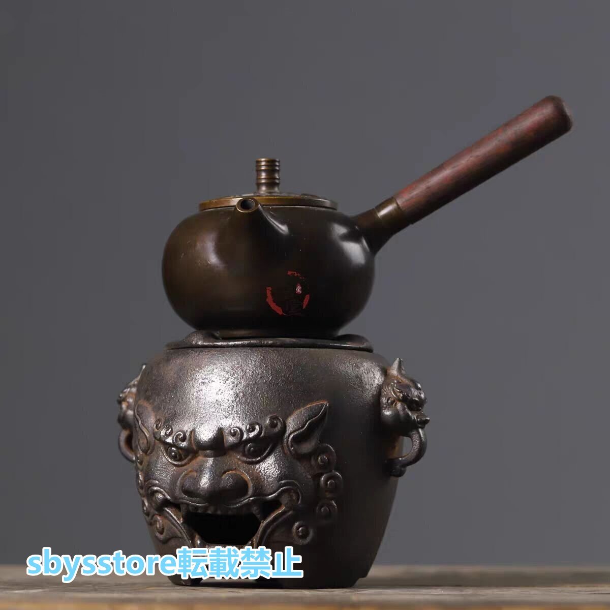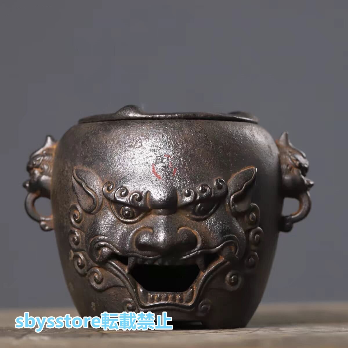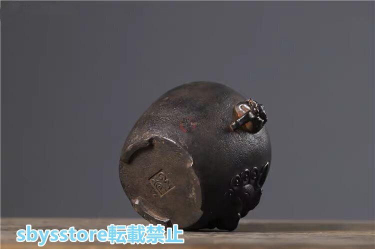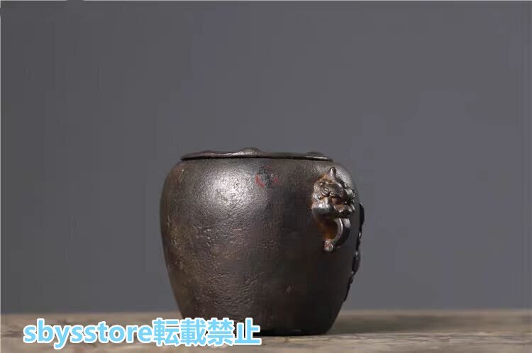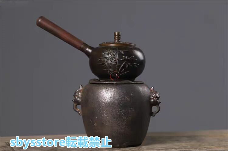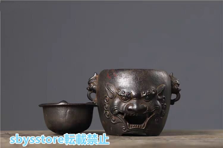 実用品★古鉄器 双耳獣頭 茶釜 鋳鉄製 炭火炉 火鉢 酒温め&煮茶神器