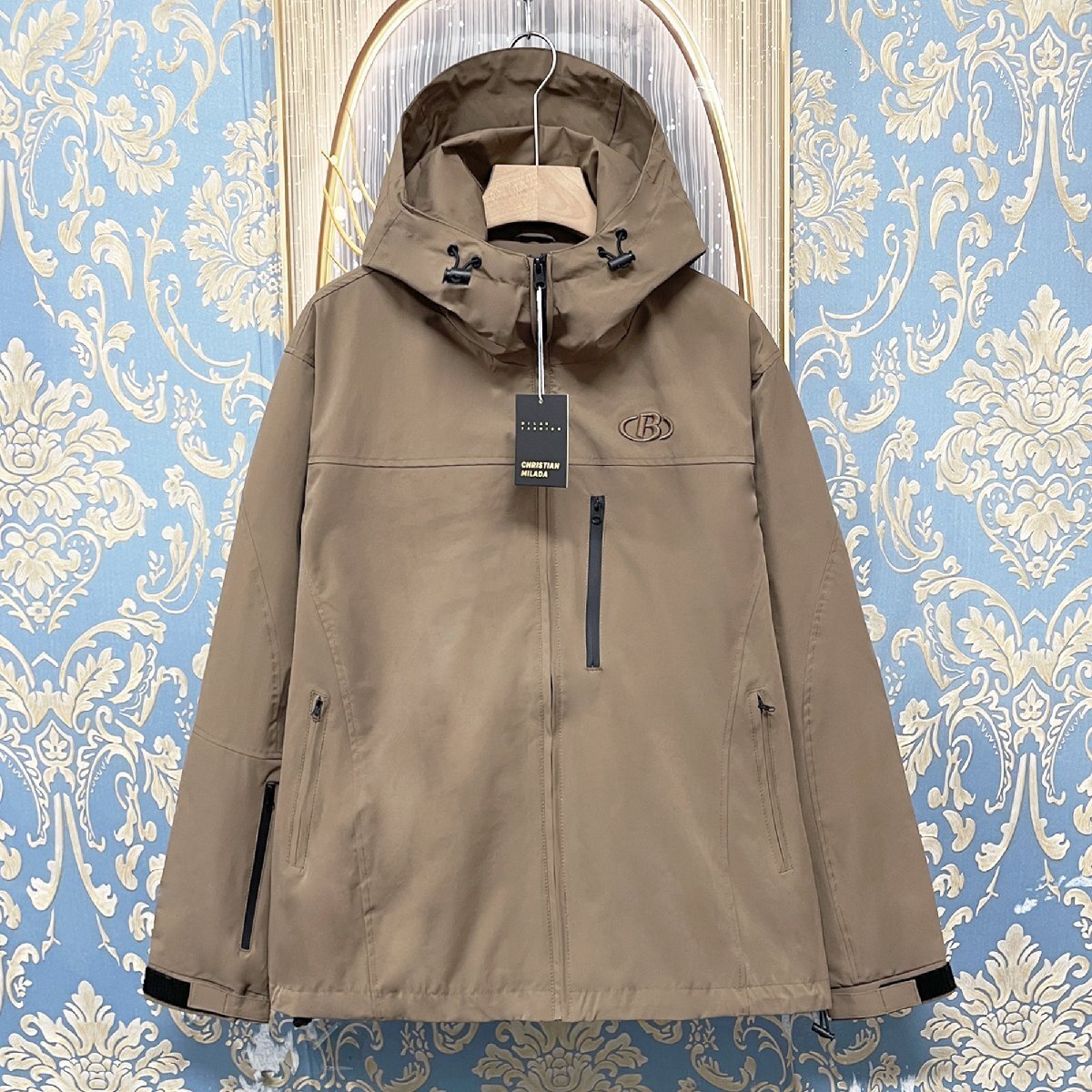 定価6万★christian milada・ミラノ発・ジャケット★定番 防風 撥水 薄手 刺繍 カジュアル マウンテンパーカー アウター キャンプ 2XL/52