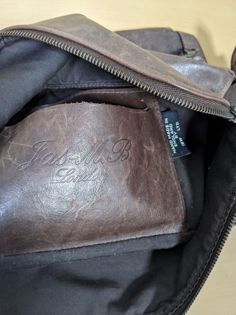Jas-M.B レザーショルダーバッグ 本革 レザー ショルダーバッグ HAND MADE IN ENGLAND こげ茶色 jas-m.b ジャスエムビー