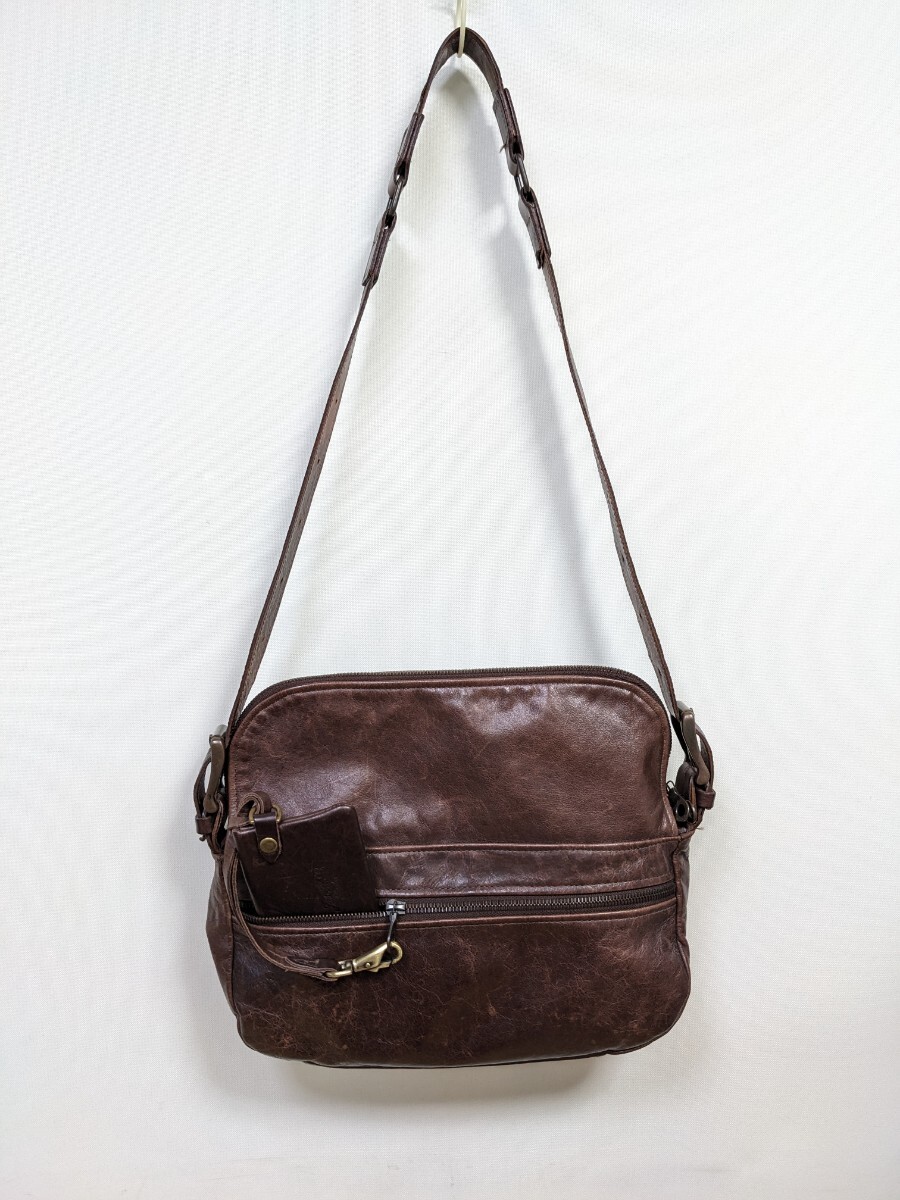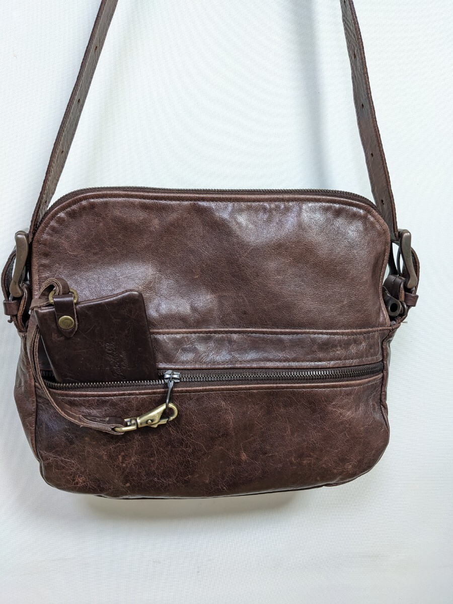 Jas-M.B レザーショルダーバッグ 本革 レザー ショルダーバッグ HAND MADE IN ENGLAND こげ茶色 jas-m.b ジャスエムビー