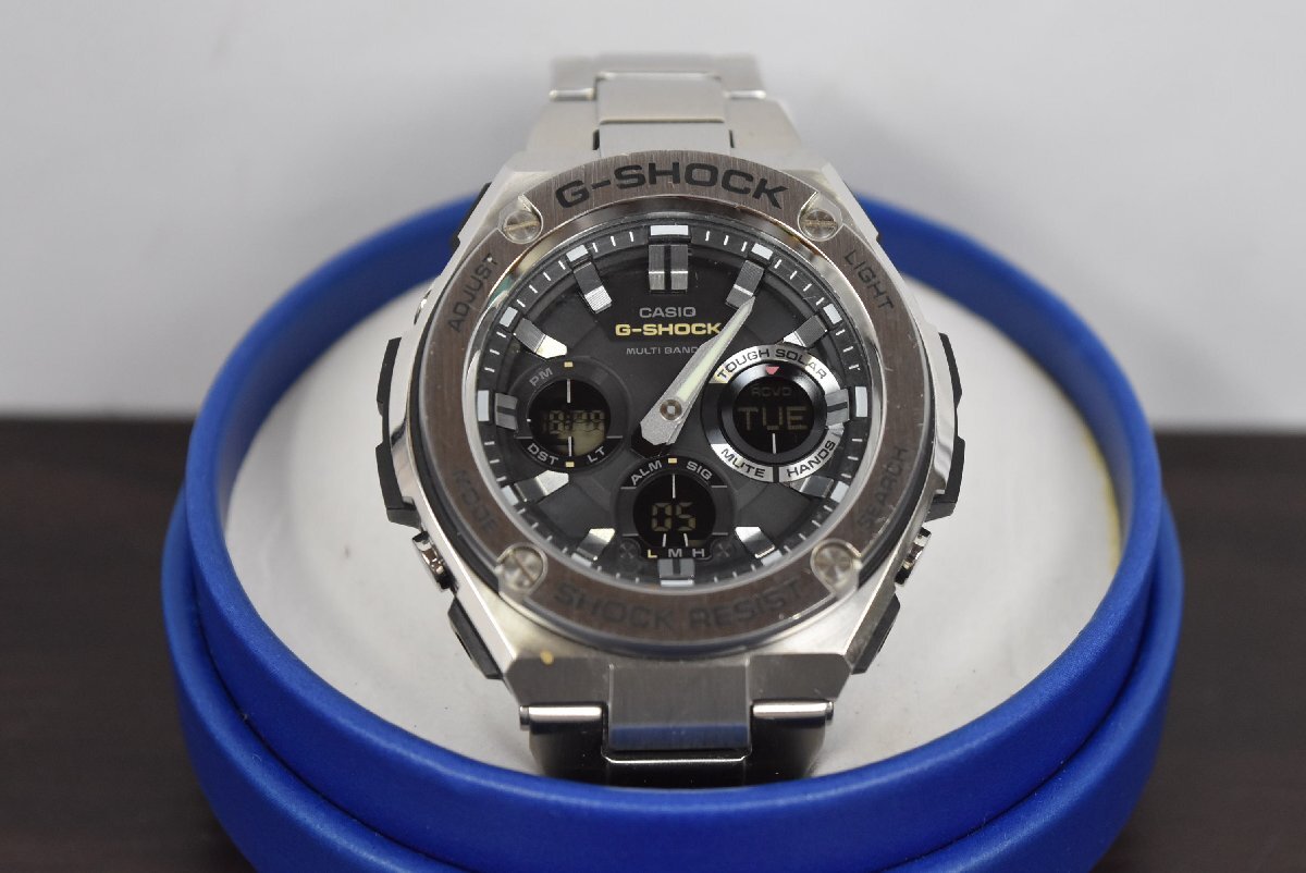 A-624 中古 ジャンク品 CASIO カシオ G-SHOCK ジーショック 腕時計 GST-W1100 電波 ソーラー デジアナ メンズ ウォッチ シルバー 黒