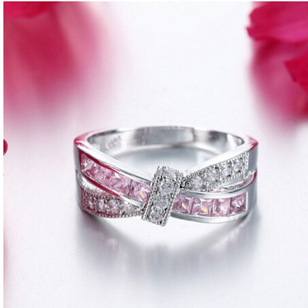 S925 クロスリボン クリスタル リング ピンク レディース 指輪