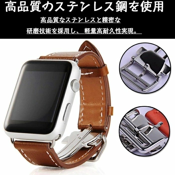 ステンレス製の留め金はシンプルで優雅な外観を呈している一方で、高級感があり、カラフルで洒落た雰囲気をお届けします。ファッションな革製apple watchバンドで、新しい気分転換を自由自在に