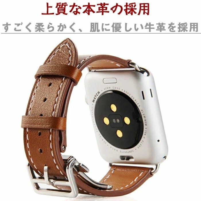 apple watch 対応バンド アップルウォッチ スマートレザーバンド 本革 ベルトスポーツ メンズ レディース アクセサリー【ブラック/42MM】