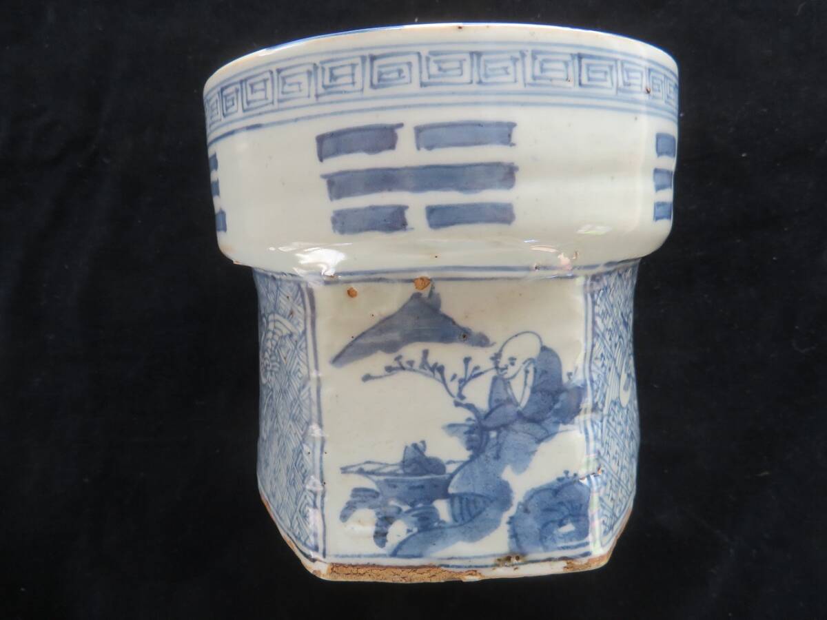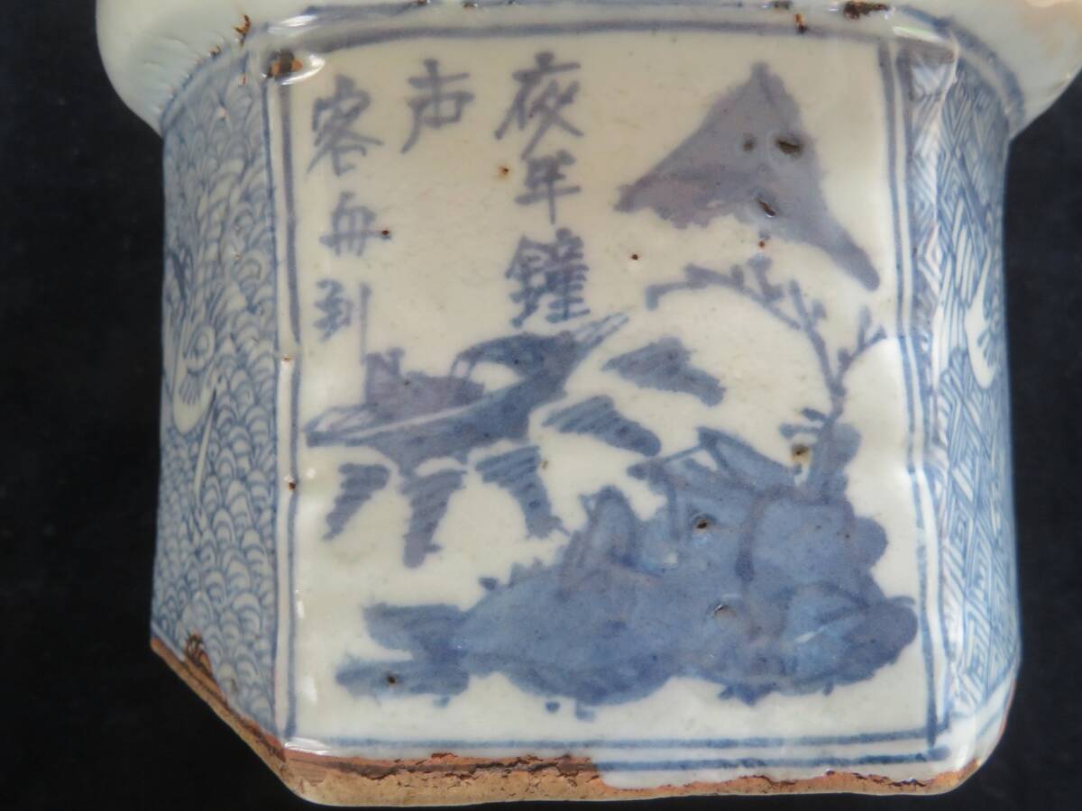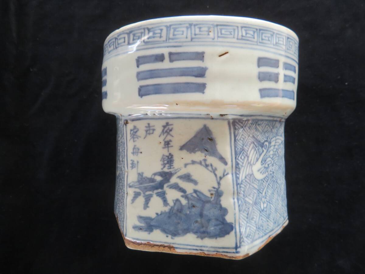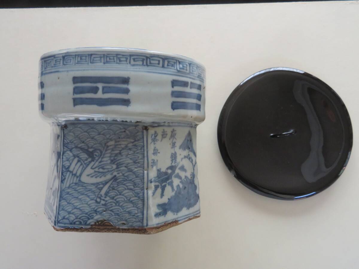 (E-36) 古染付 面取水指 八卦紋 塗蓋 明時代 | |