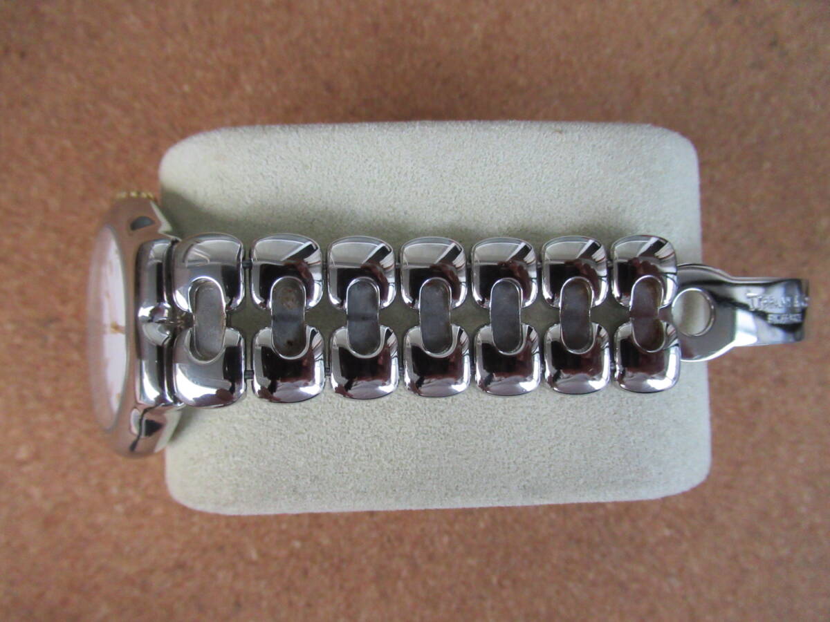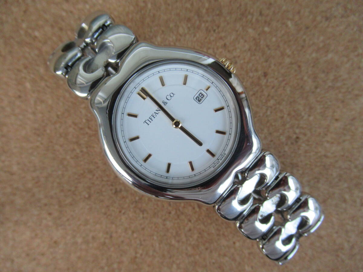ティファニーの《ティソロ》のメンズモデルです!! 40代以上の方だと懐かしいと思う時計ですね。 発売当初は大ブレイクして中古品でも20万円以上しましたが、現在では当時とは1桁違う信じられない価格になっており、当時の中古価格を知っている方は驚く事でしょう!! メンズモデルは、レディースモデルには無いカレンダー付きです。