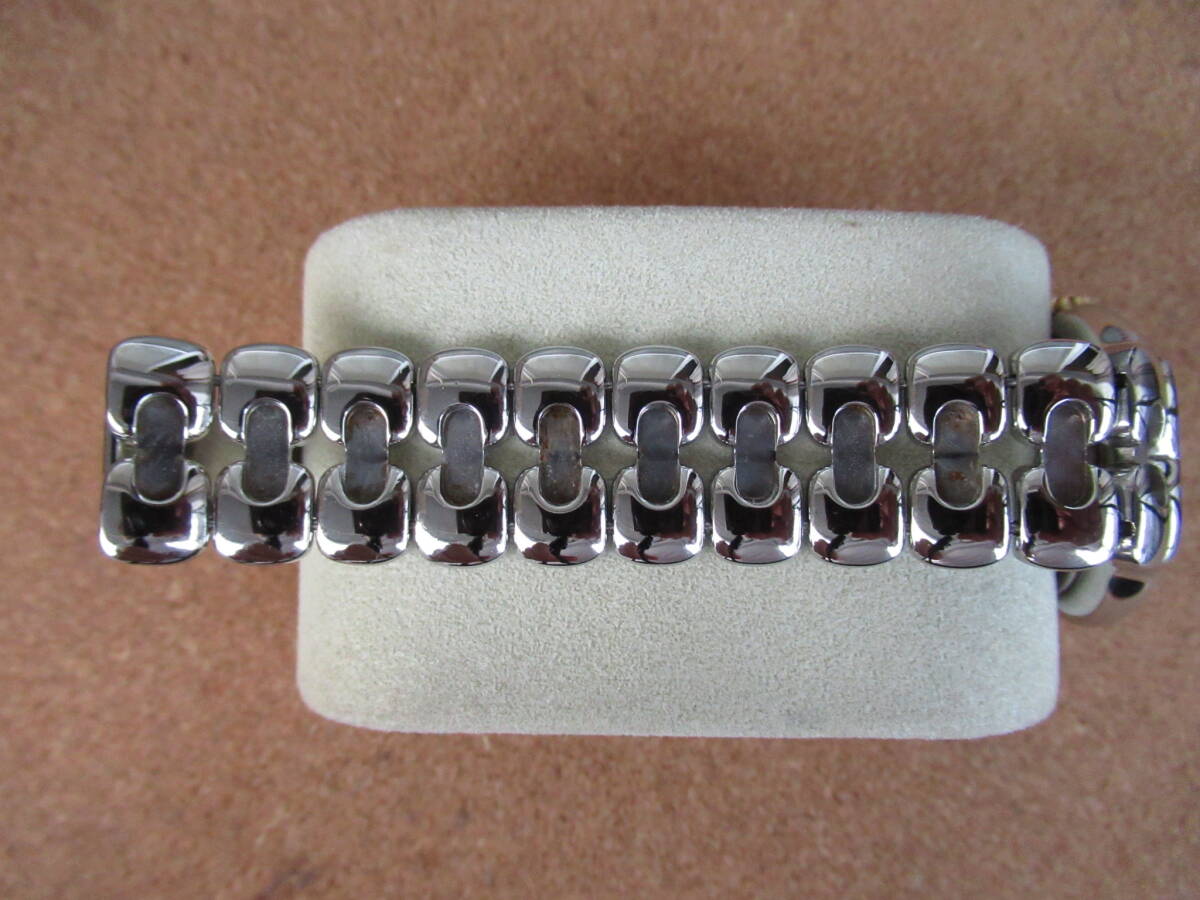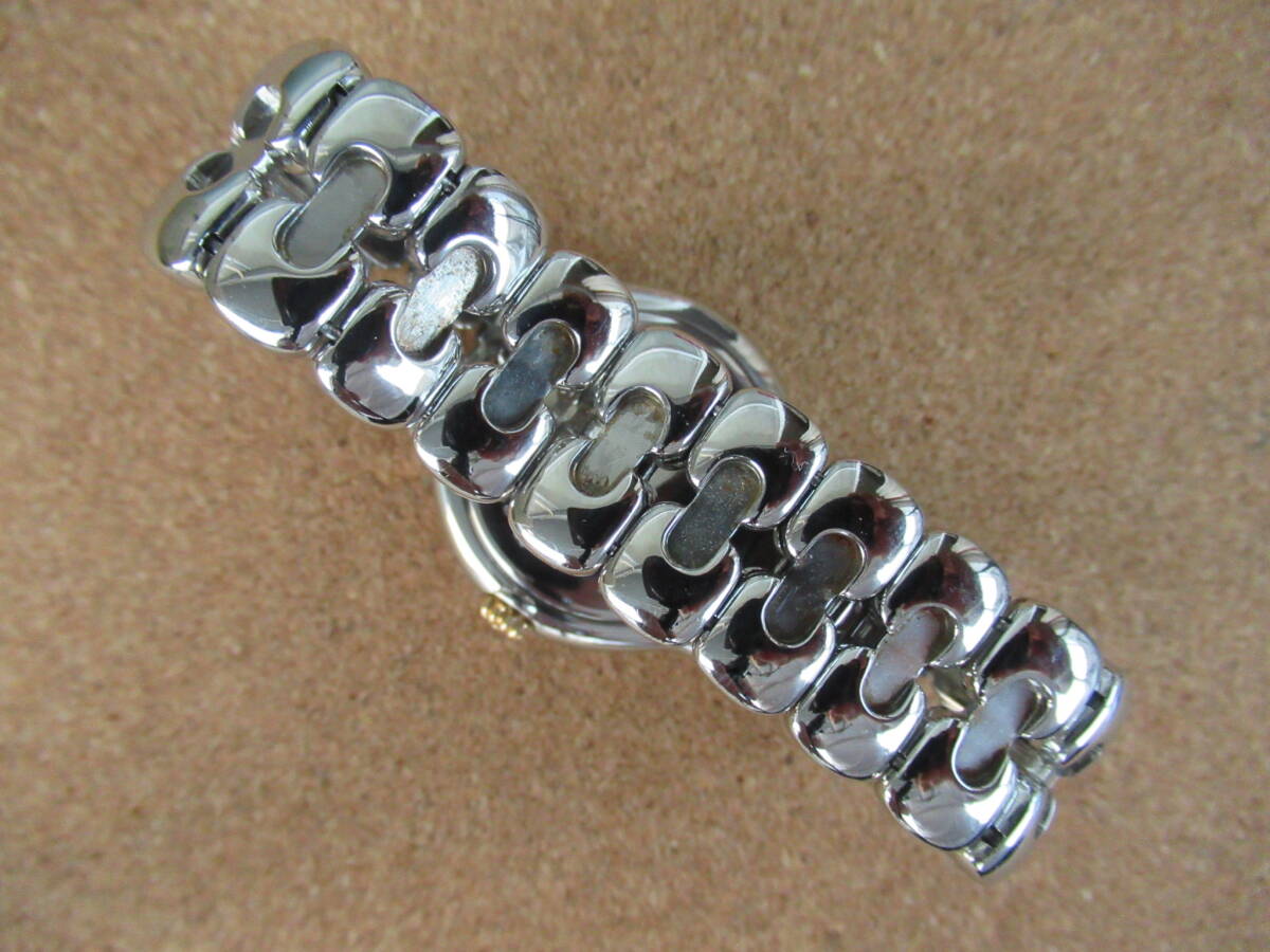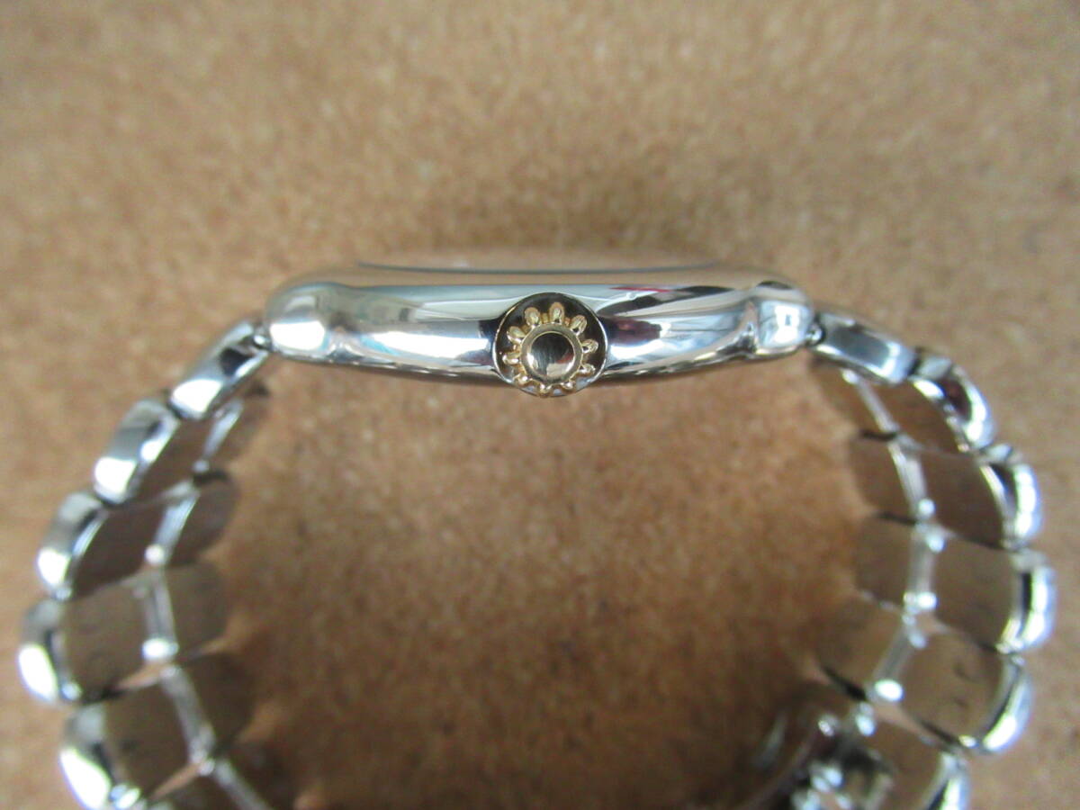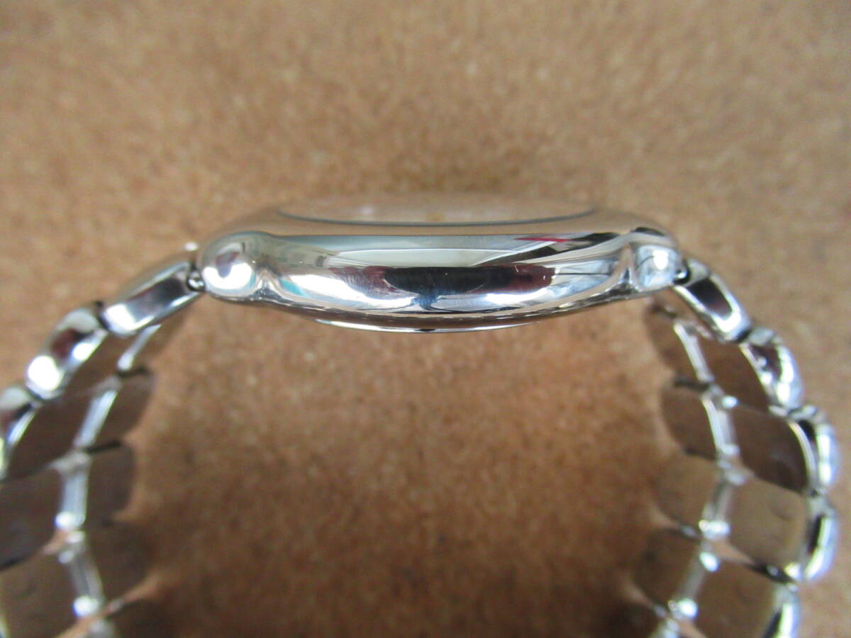 状態は、外装仕上げを施して中古品として大変綺麗な状態にリフレッシュ済みです!! 更に本体ブレス共に特殊洗浄液で除菌洗浄済みなので、買い取った物をそのまま並べるリサイクル店に有る様な、隙間に手垢汚れのこびり付いた気持ち悪い物とは異なります!!(神経質な方はご遠慮下さい)  ケースサイズは約34ミリ、腕周りは測定具計測で16.5センチ位でコマを外す事で短く出来ます。