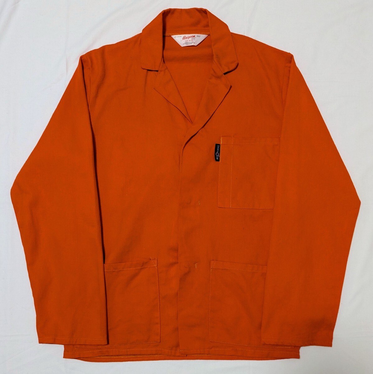 タグに記された「OLDHAM & MIDDLETON LANCASHIRE」は、かつて世界的な綿織物産業の中心地であったランカシャー地方、マンチェスター近郊の地名であり、このジャケットがイギリスのワークウェア文化の黄金期に、確かな歴史と技術の背景のもとで製造されたことを示しています。