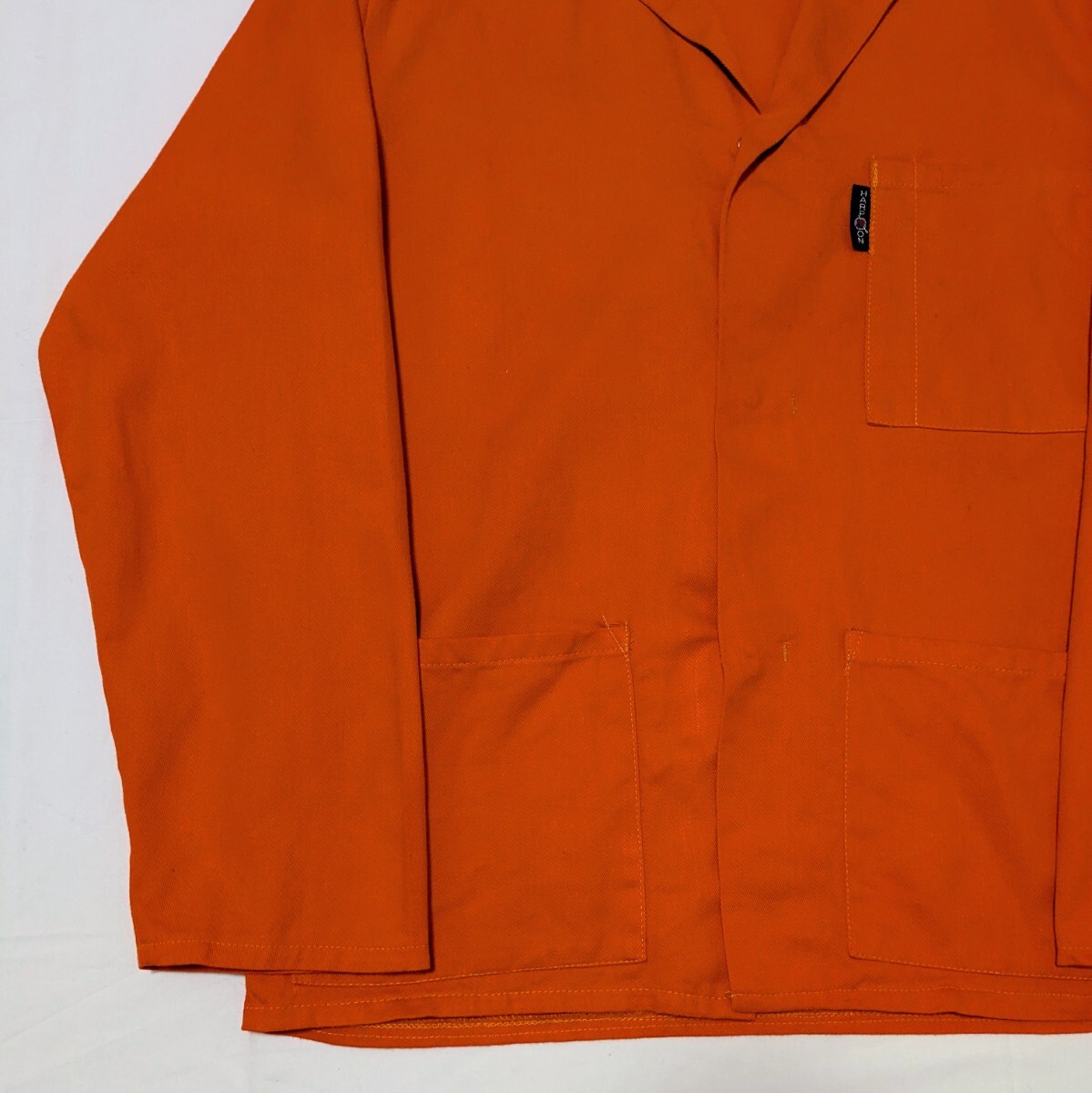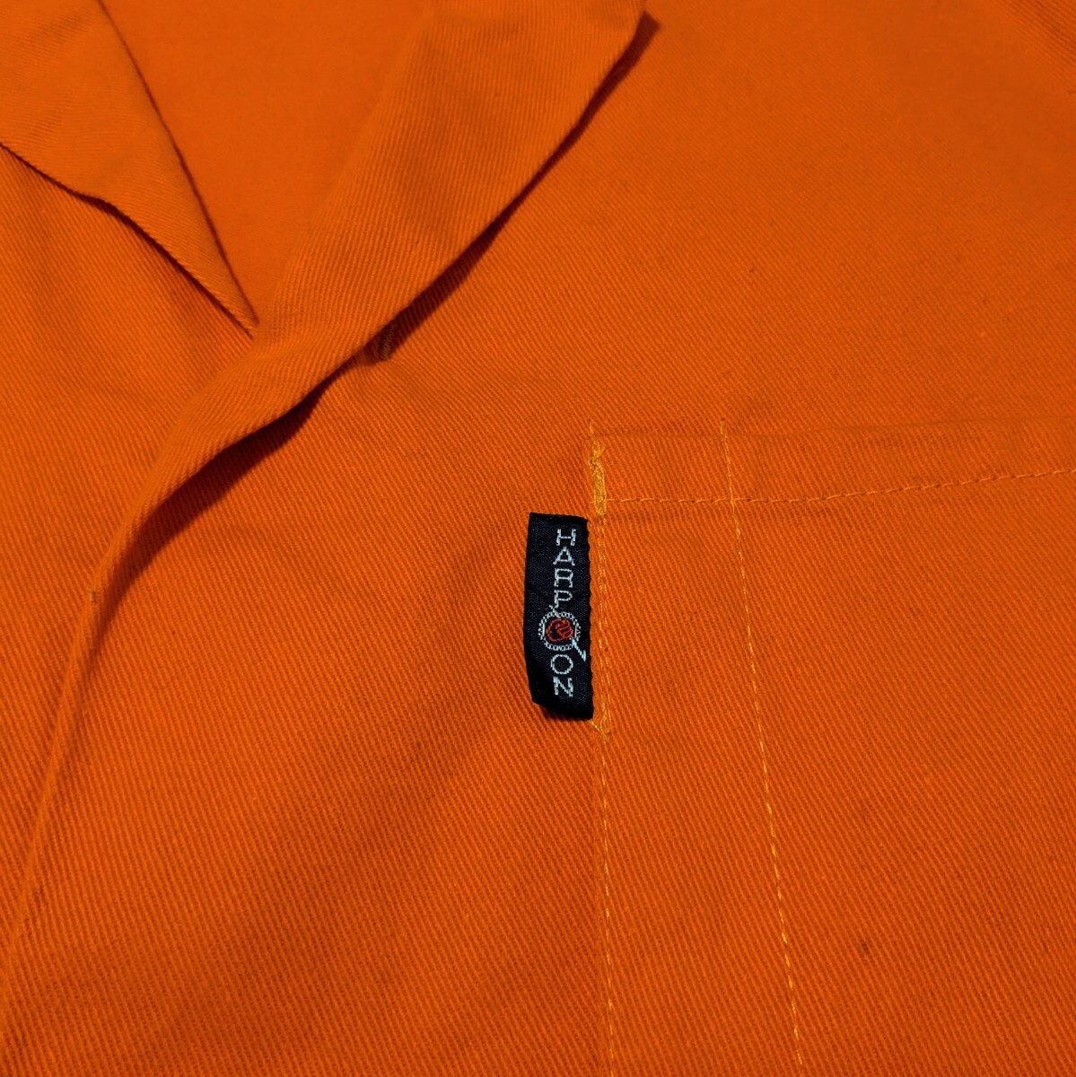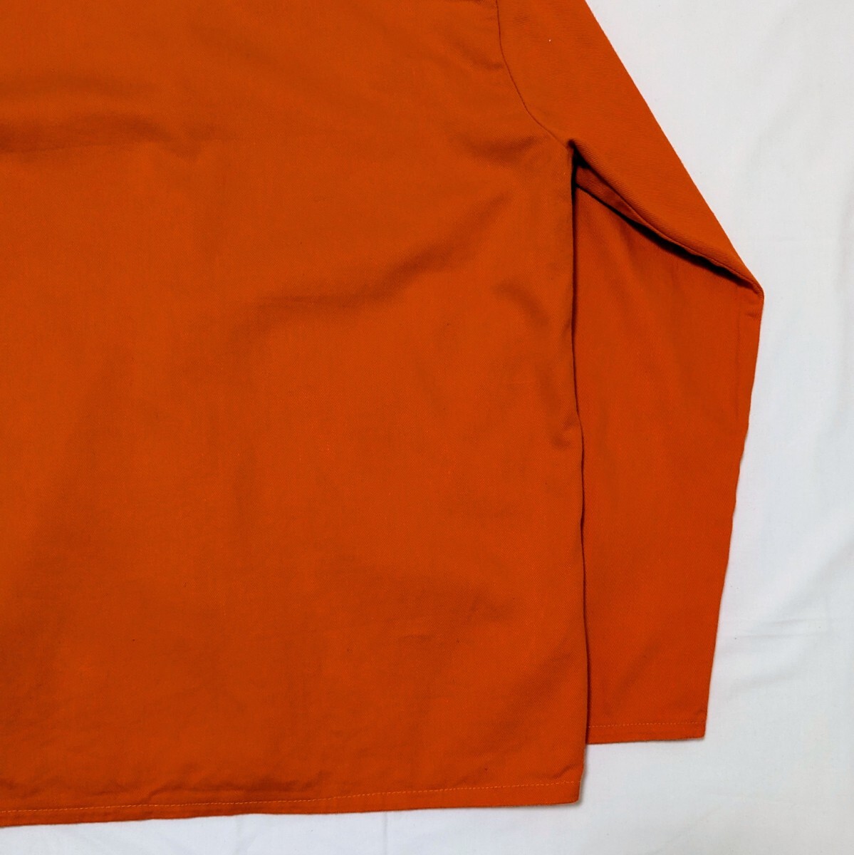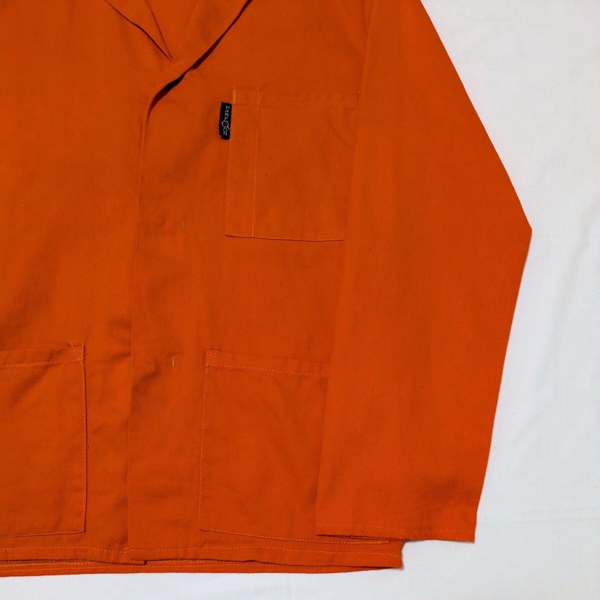 特に目を引くのが、そのヴィヴィッドなオレンジカラーと、しっかりとした質感のコットン100%のドリル生地で、質実剛健なブリティッシュ・ワークウェアらしいタフな素材感が魅力です。