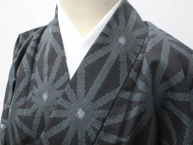 リサイクル商品のため、胴裏汚れがございますが着用可能なお品です。 バチ衿でございます。 地色は 黒です。 1枚目の画像が近いお色かと思われます。 素材はポリエステルです。 |