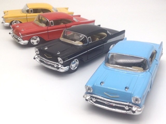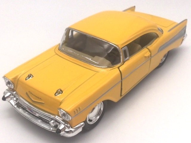 キンスマート社製 海外ライセンス品 クラシックカー 1957年式 シボレー ベルエア スケールは1/40 お届けするのは画像1枚目の商品のみとなります。 2~4枚目は共通の画像となっております。ご注意くださいませ。 ・サイズ:全長約12.5cm 高さ約3.8cm 幅約4.5cm ・プルバックアクション付きなのでチョロQみたいに走らせる事が出来ます。 ・ボディはダイキャストメタル製。 ・シャーシや内装はプラスチック製。 ・内装はベージュ。 ・左ハンドル&エンブレムも再現されています。 ・両サイドドア開閉可能。 こちらは箱入り商品ではございませんので、ご注意くださいませ。 ●神経質な方にはお勧めできません● 1台1台検品し丁寧に梱包させて頂きますが、入荷時からのかすかな汚れ、 塗装ミス、擦り傷等はあるかもしれません。 |