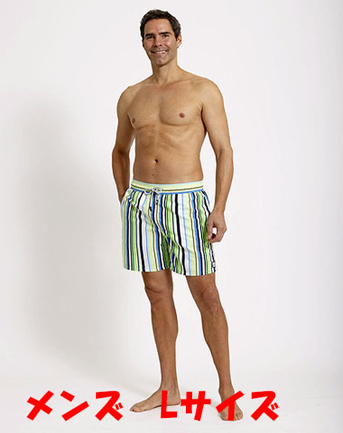 【Lサイズ】Tom&Teddy 水着 ストライプ・ブルー&グリーン