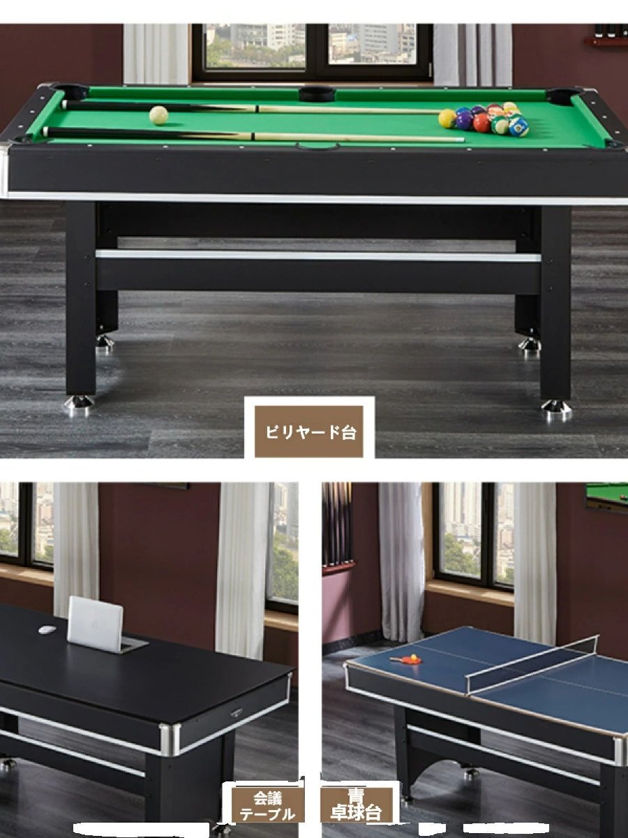 高品質1.83mビリヤードテーブル & 1.83mビリヤードテーブル3in1― 家庭エンターテイメントの完璧な選択 ―この1.83mのビリヤードテーブルは、卓越したゲーム体験を提供します。ビリヤード愛好者から家庭エンターテイメントまで、すべてのニーズに対応可能です。クラシックなビリヤードプレイだけでなく、卓球など他のゲームも楽しめる1.83m三合一ビリヤードテーブルは、家庭やオフィス、エンターテイメントスペースに最適な選択です。製品の特徴:多機能設計:このビリヤードテーブルは、従来のビリヤードだけでなく、1.83m三合一ビリヤードテーブルでは、簡単に卓球などのエンターテイメントにも切り替えることができます。家庭にさらなる楽しさをもたらします。精巧な工芸:高品質の素材を使用し、ビリヤードテーブルの安定性と耐久性を確保。滑らかで堅牢なテーブルトップは、安定したゲーム環境を提供し、すべての年齢層に最適です。コンパクトなサイズ:1.83mのサイズは、さまざまな家庭や小さなスペースに最適で、広い空間を必要とせず、十分なエンターテイメントを提供します。簡単な設置と収納:常に使用する場合でも、時々使用する場合でも、このビリヤードテーブルは非常に簡単に設置できます。設置後のサイズは 1.83m × 0.96m × 0.79m で、収納にも便利です。シンプルでスタイリッシュな外観:シンプルで洗練されたデザインは、黒色または他のカラーで、モダンな家庭やオフィスのインテリアにも完璧にマッチし、高級感を演出します。サイズ情報:1.83mビリヤードテーブル:設置後のサイズは 1.83m × 0.96m × 0.79m で、家庭やオフィスのエンターテイメントに最適です。コンパクトなデザインで、さまざまなスペースにフィットし、ビリヤードを楽しむことができます。1.83mビリヤードテーブル3in1:設置後のサイズは同様に 1.83m × 0.96m × 0.79m で、ビリヤード、卓球など、さまざまなエンターテイメントを楽しむことができます。使用シーン:家庭エンターテイメント:家族と一緒に楽しい時間を過ごし、素晴らしい思い出を作りましょう。オフィスのリラックス:オフィス空間にリラックスと活力をもたらし、心をリフレッシュします。商業施設:ホテル、クラブ、ビリヤードホールなど、ゲストに多様なエンターテイメント体験を提供します。なぜこのビリヤードテーブルを選ぶべきか?単なるビリヤードテーブルではなく、エンターテイメント生活の一部になります。ビリヤードや卓球、他のゲームを楽しむことができ、高品質、洗練されたデザイン、強力な機能を備えたこのビリヤードテーブルは、すべてのニーズに応える最適な選択です。エンターテイメント空間に最適なビリヤードテーブルです。使用上の注意知らせ:手動測定のため、サイズの若干の誤差はご了承ください。詳細は実際に届いた商品をご確認ください。商品写真はできる限り実物の色に近づけるよう努めておりますがご使用のPCモニター設定や部屋の照明により多少、色の変化が感じられる場合がございます搬入経路(ドア幅、エレベーター、階段)によっては通路が通らない場合もありますので 事前に必ずご確認ください。輸入品のため、ダンボール箱は破れ、へこみ、汚れがございます。ご了承ください。本体に問題はございません。特大サイズの荷物のため、配達日時の指定はできません。ご了承ください。 1F 玄関でのお渡し となります。また配達の際に、大変恐縮ですが、お客様ご自身で荷下ろしのご手配をお願いいたします。体積デカい商品のため、運送中万が一小さい破損が起こる場合、壊れた部品を再発送することが対応可能です。返品返金受けかねます。沖縄、北海道、離島などの住所について送料は別途です。ご理解よろしくお願い申し上げます。