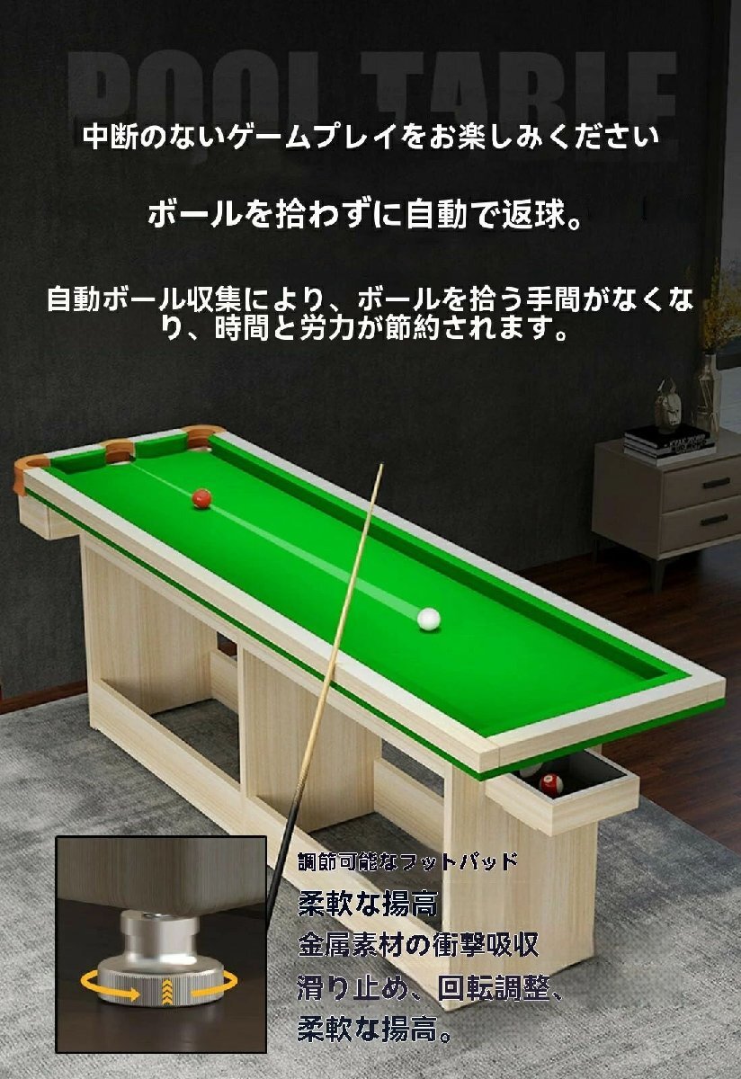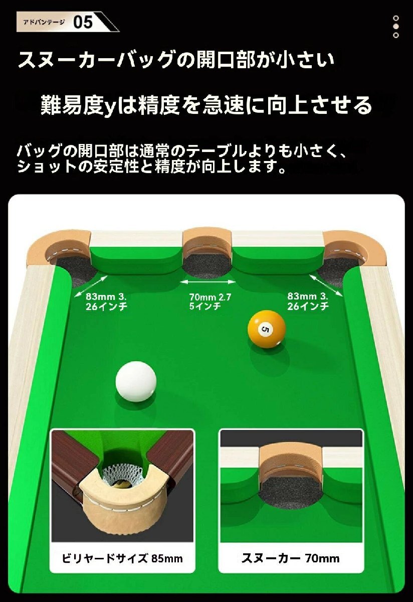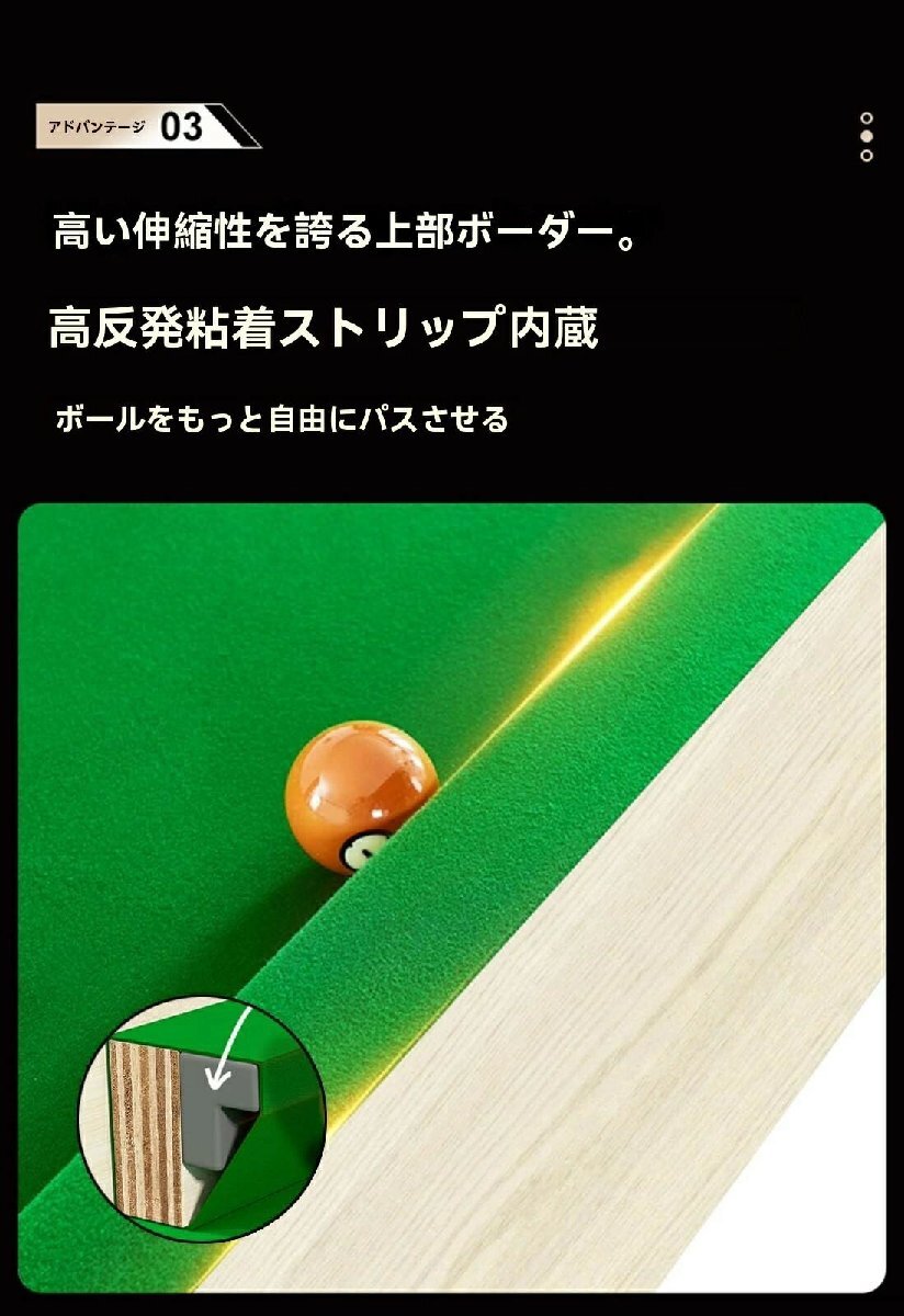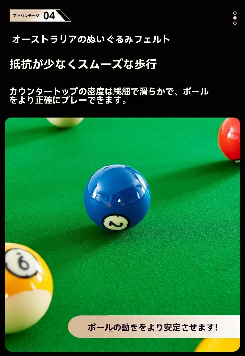【強力なフェルト表面とネット】: 当社のプール練習台は、滑らかで傷がつきにくく耐久性のあるフェルト表面を備えており、スムーズなプレーを実現します。強力なナイロンネットポケットとプレミアムクッションバンパーにより、ビリヤードボールの衝撃による損傷や破損が保証されません【耐久性と安定した構造】:テーブルは頑丈で耐久性のあるMDFで作られています。 安定したサポートのための強化された水平プレートが付いています。 各テーブルの脚には、バランスを調整し、床の傷を防ぐために調整可能な滑り止めの足場が付いています【耐久性のあるテーブル脚】:テーブルは使いやすい快適な腰の高さに組み立てられています。 ベッドの下に平らな面を置いて収納したり、壁に立てかけて収納したりできます。 地下室、ガレージ、大人の遊び場、またはあらゆるコーナーでの使用に最適です【省スペース設計】: コンパクトで取り外しが簡単なこのゲームテーブルは、組み立てが簡単で、家のどの部屋にもすぐに設置できます【リアルなデザイン】: 同じ緑色のフェルトを使用した滑らかなプレイフィールドが適切な打感をもたらします。 エッジのクッションによりボールが跳ね返り、プロのようなショットが可能になります。 ゲームボールとキューは最適なサイズと重さなので、ショットの練習やスキルの向上に最適です