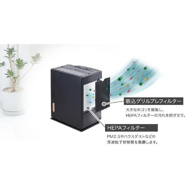 吸気口に大きなホコリを捕集するグリルプレフィルター、その奥にPM2.5やハウスダストなどを集塵するHEPAフィルターを搭載。