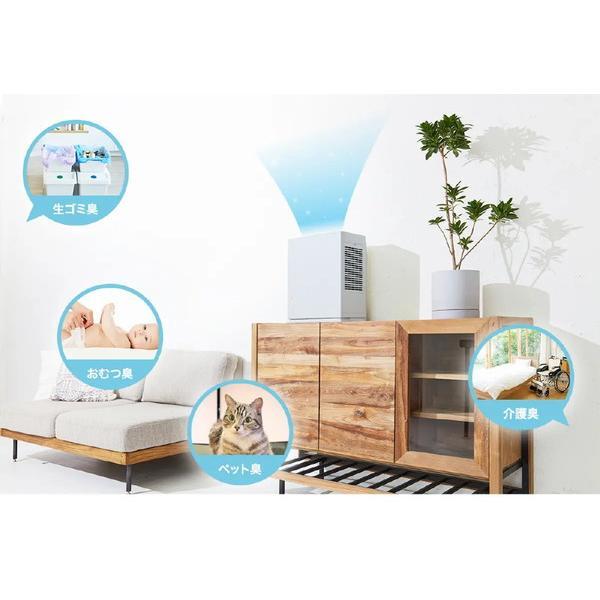 小さなお子様のオムツから発生する汚物臭、ペットのトイレや生ゴミなど、継続的に発生し、お部屋の中を漂う不快なニオイも本体内に吸引し、次亜塩素酸が強力に脱臭。