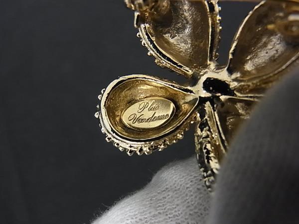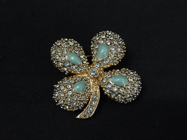 ■美品■ PlusVendome プラスヴァンドーム ラインストーン ピンバッチ ピンブローチ アクセサリー ゴールド系×ライトブルー系 DJ7435