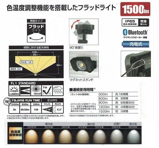 タジマ製のスピ-カ搭載充電式LEDワークライトのLE-R151です。