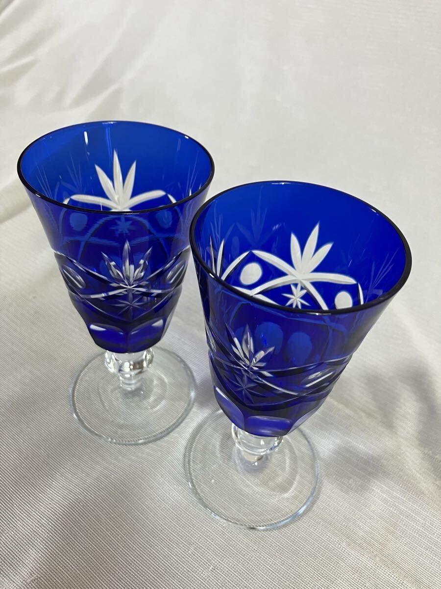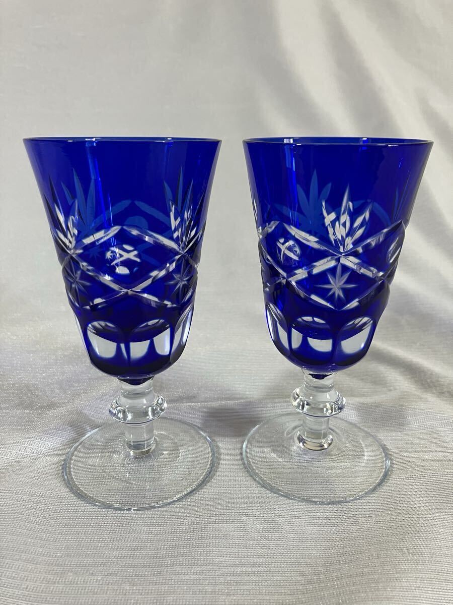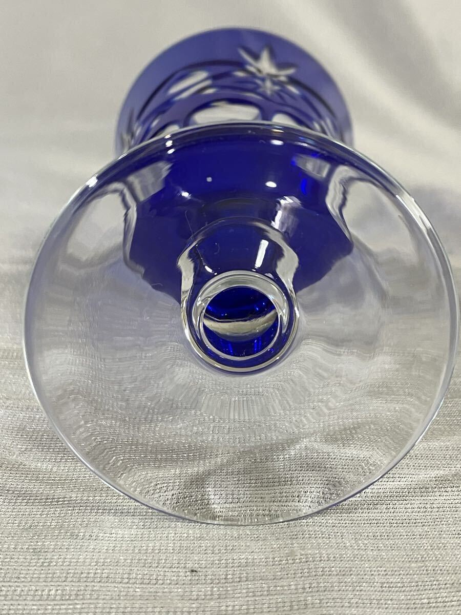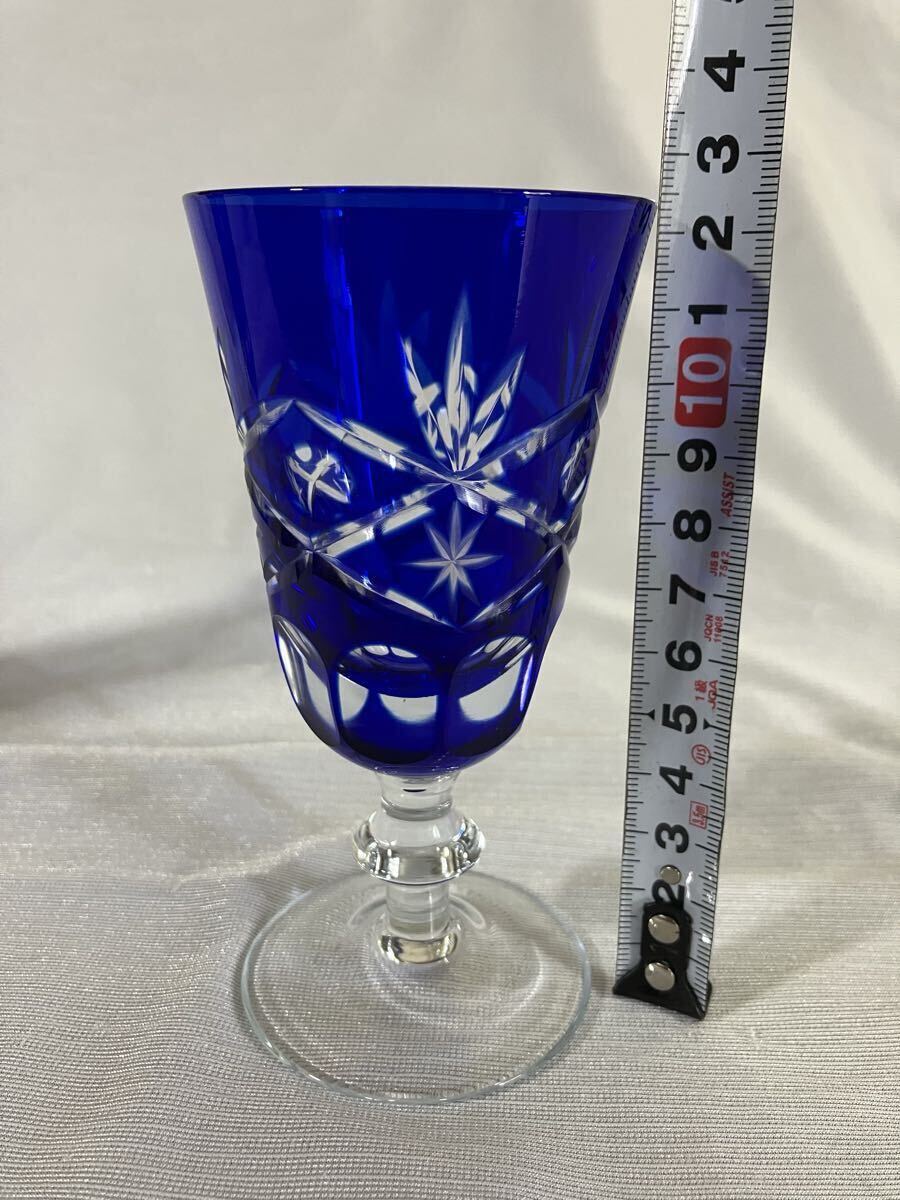 綺麗な青色の切子ワイングラスです。