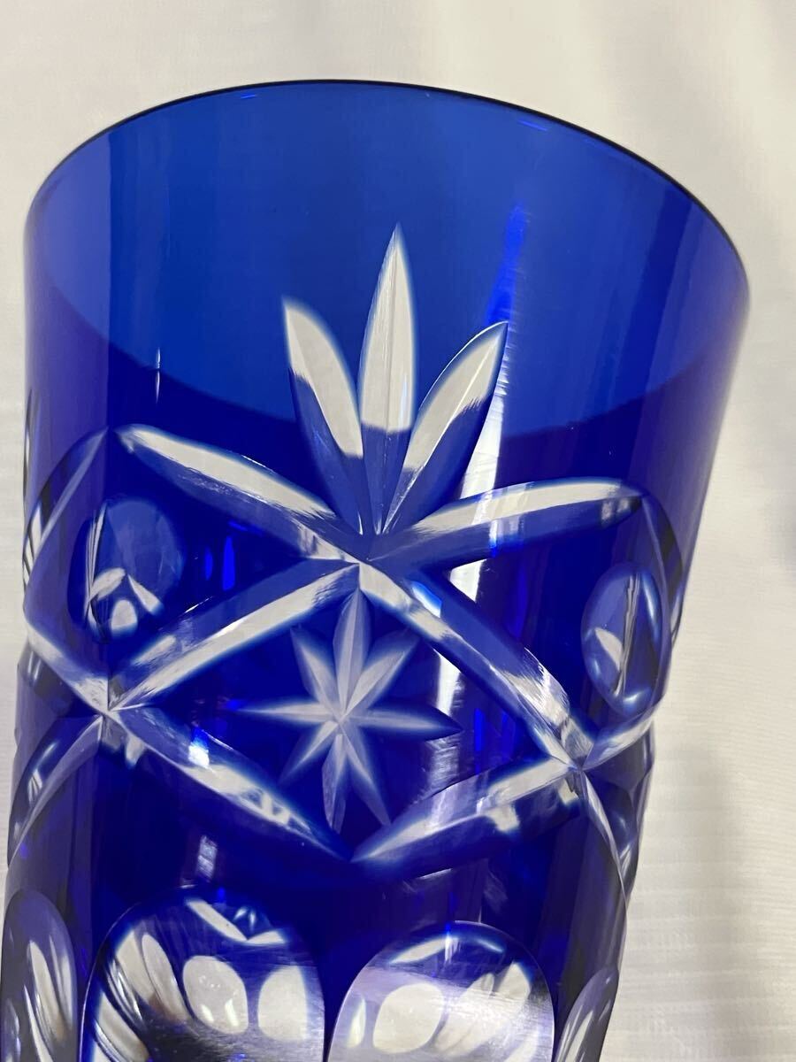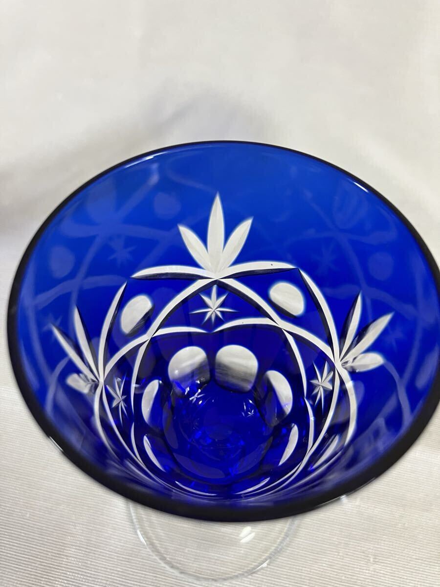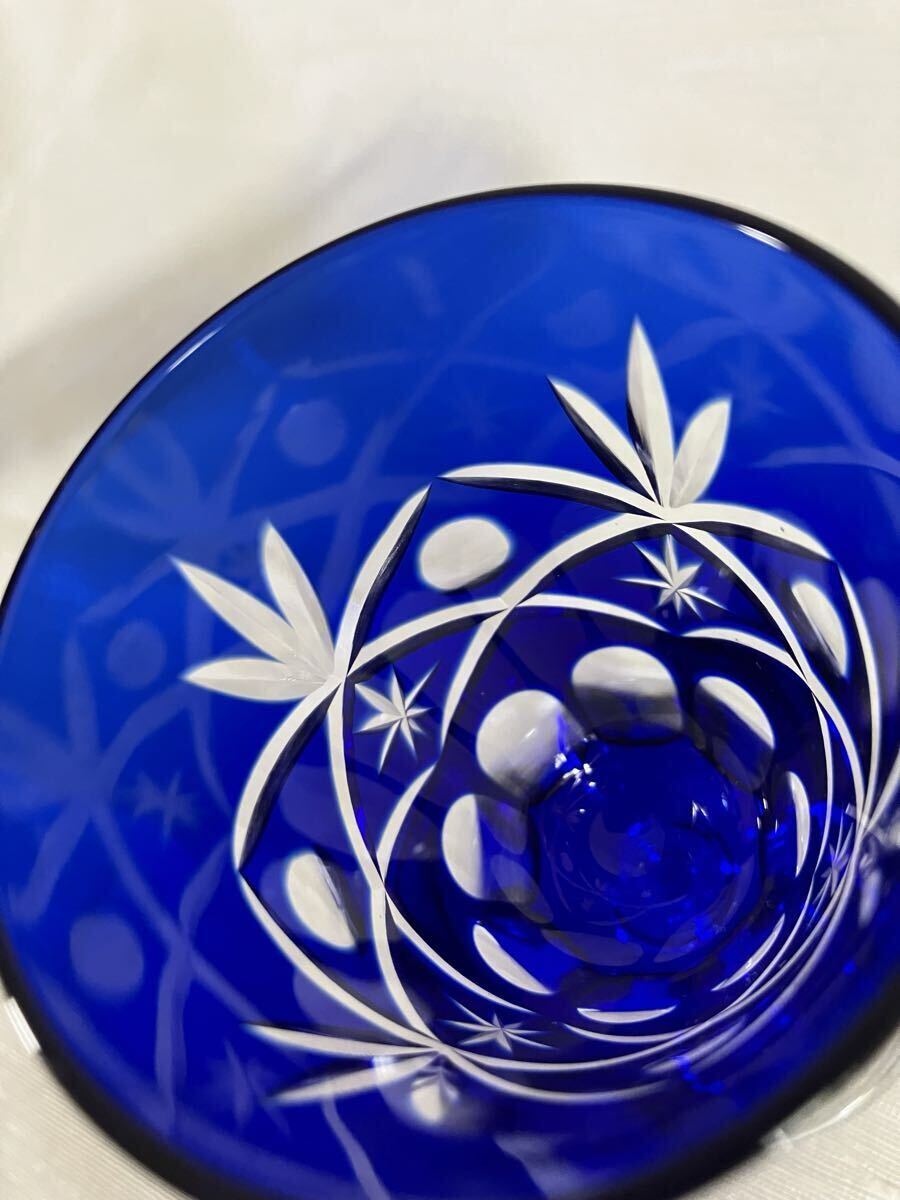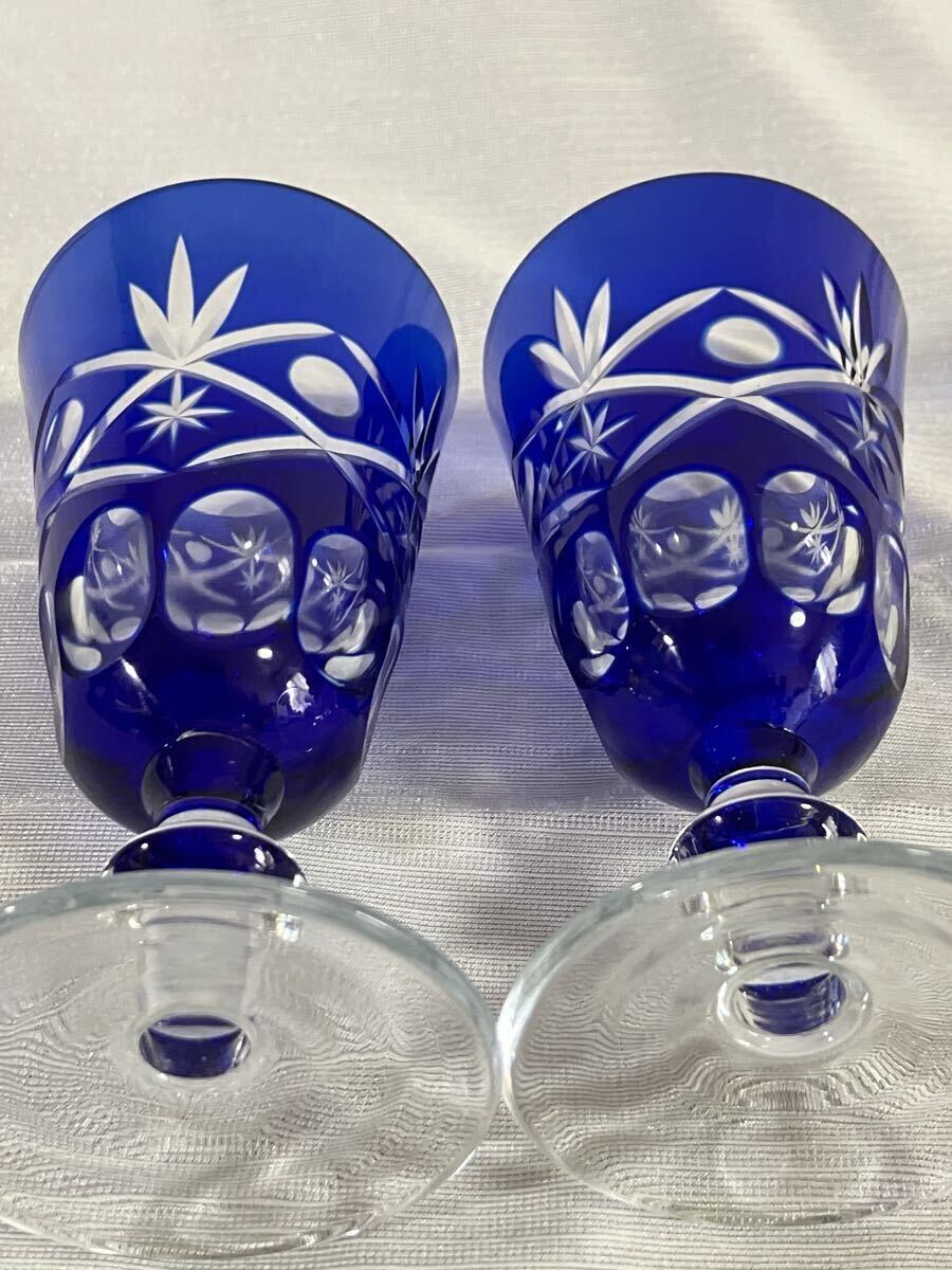 綺麗な青色の切子ワイングラスです。