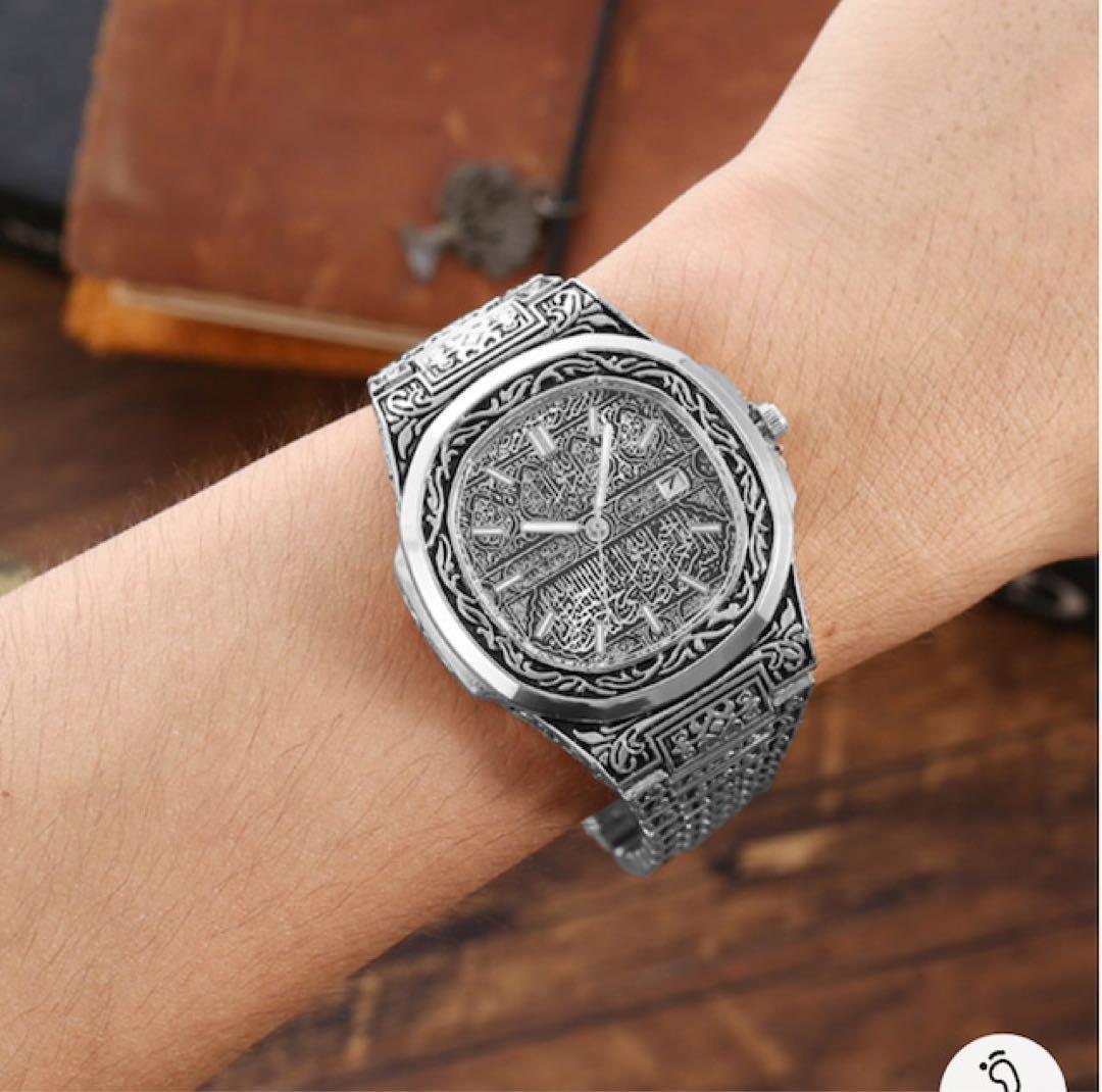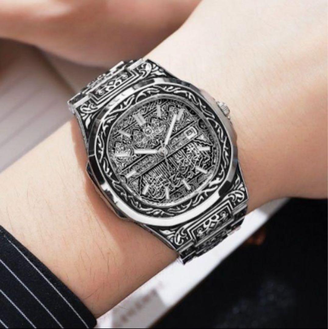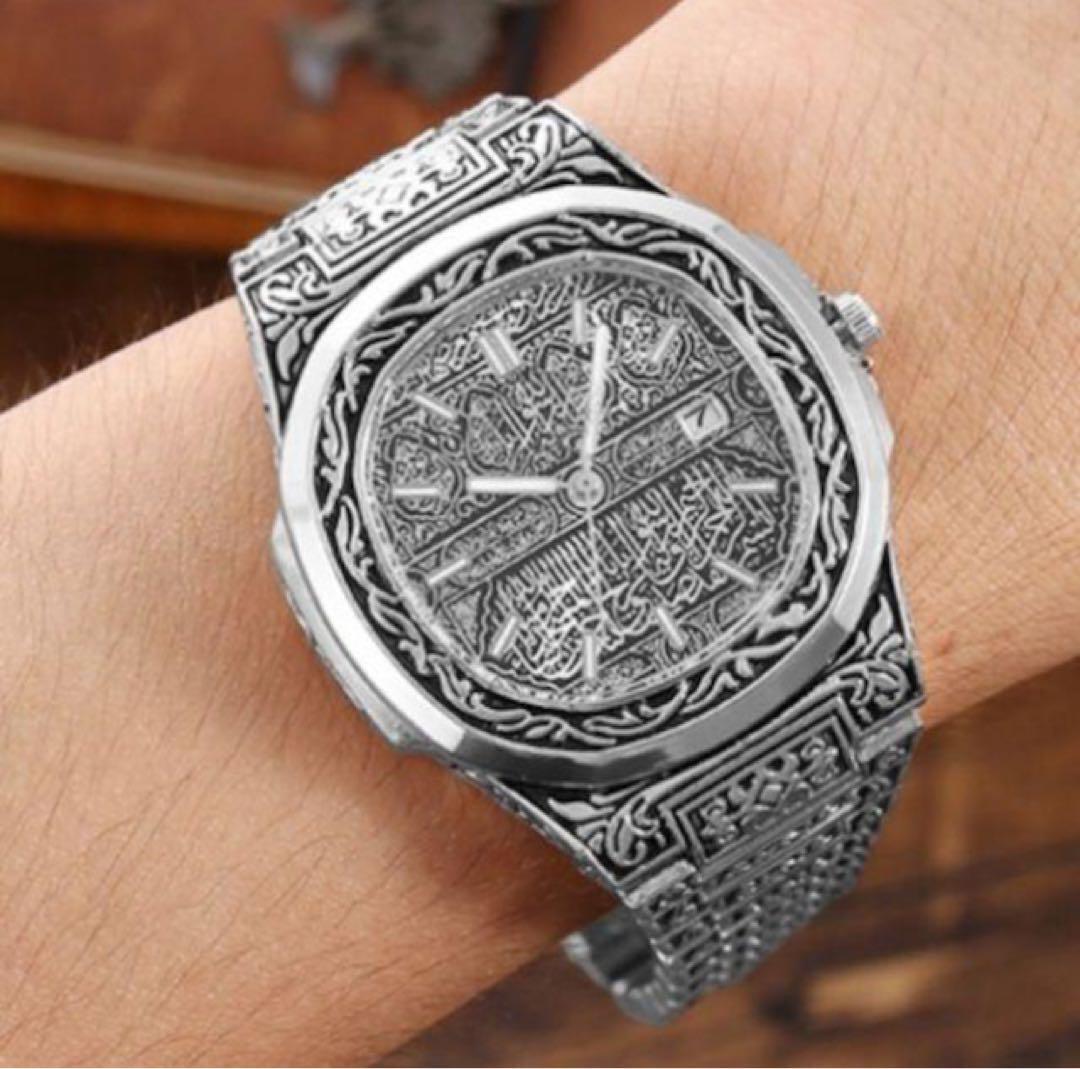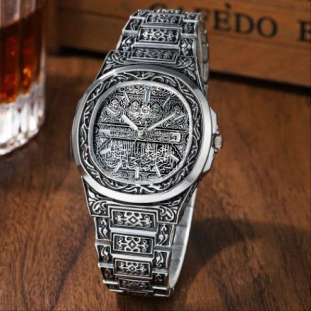 大人気のシルバー腕時計に総柄のアンティークデザインベルトがオシャレでインパクトあります。