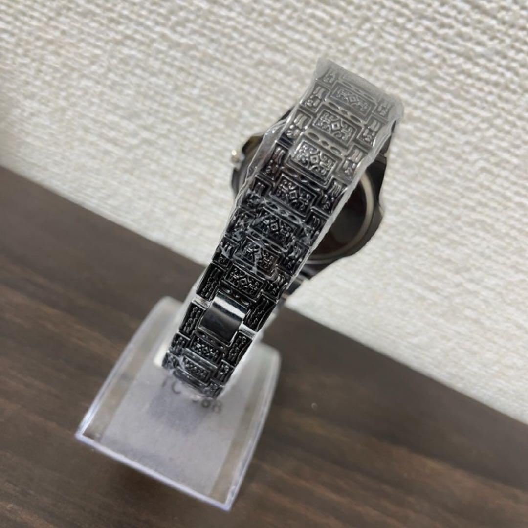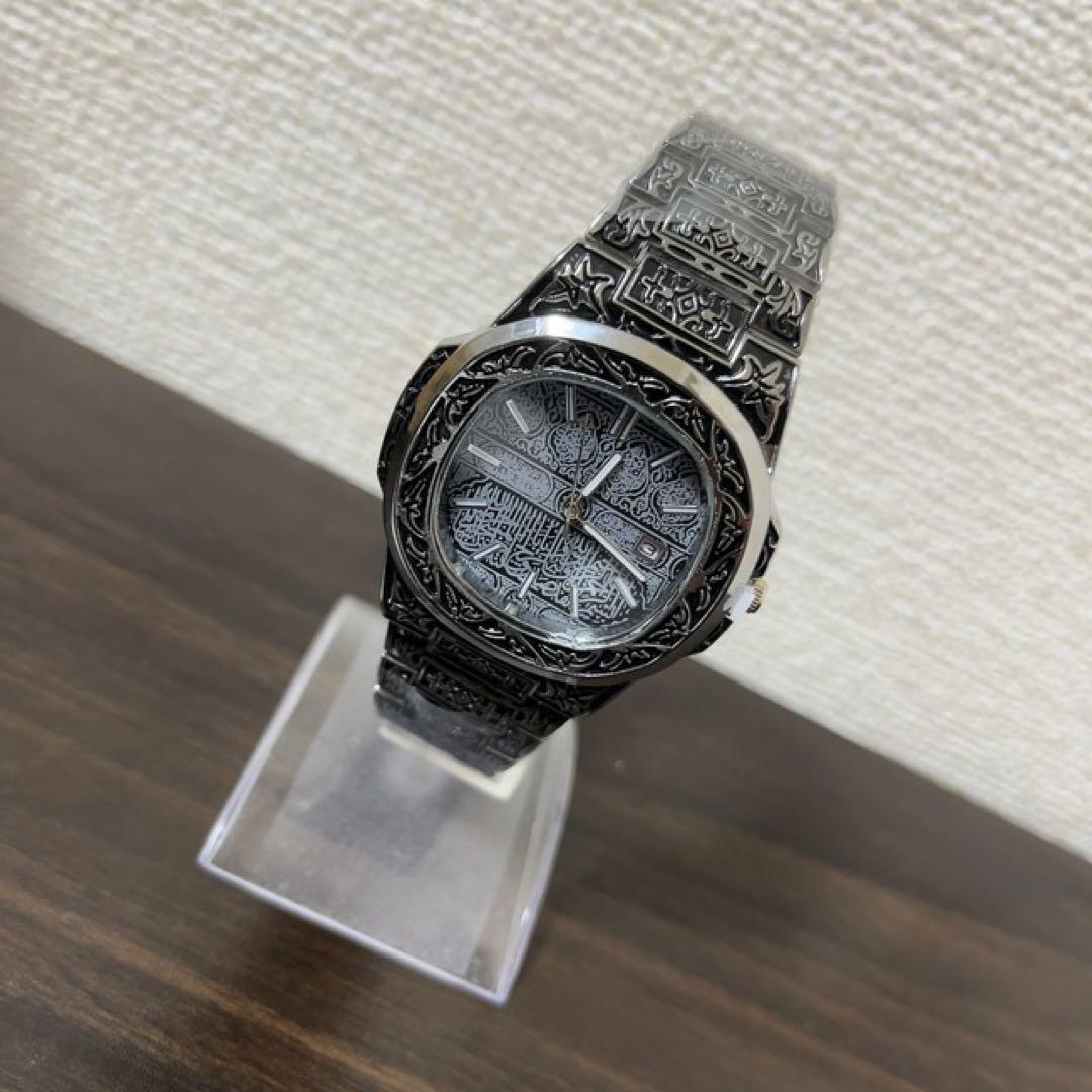 メンズ腕時計 総柄 アンティーク シルバー×ブラック クォーツ 電池式
