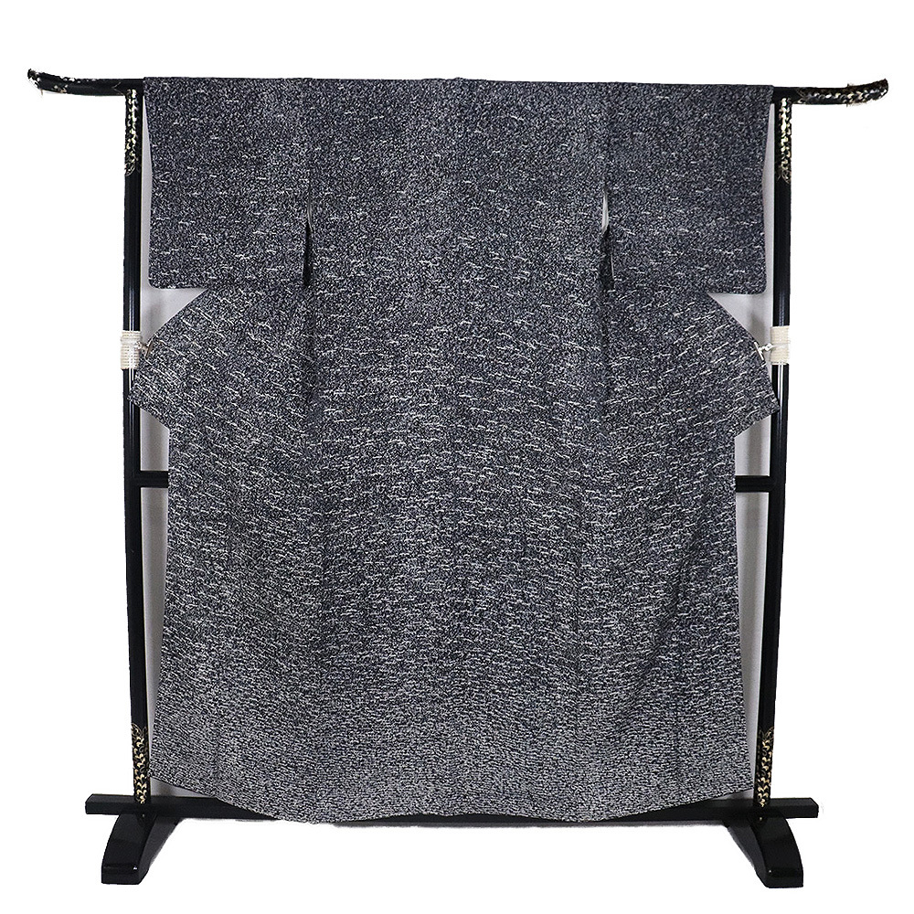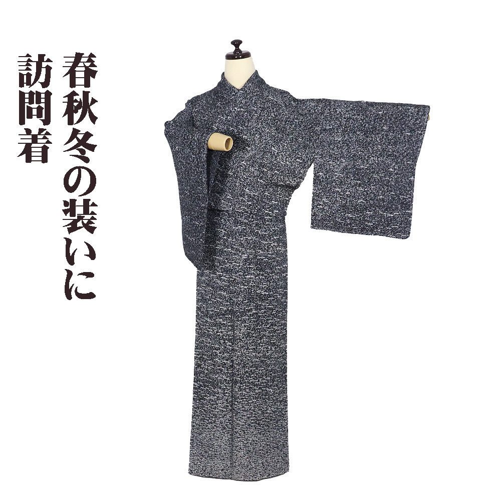 | 訪問着 袷 丹後縮緬地 タタキ染 黒(黒色)・白(白色)・金箔地 さざ波 165 広襟 仕付け付き | |