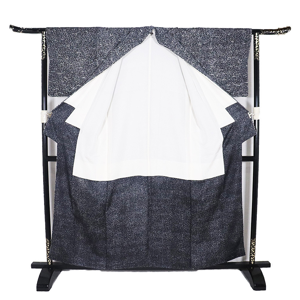 | 色・柄 | 訪問着 袷 丹後縮緬地 タタキ染 黒(黒色)・白(白色)・金箔地 さざ波 (写真では上手く色が出ない場合があります。ご了承下さい) |