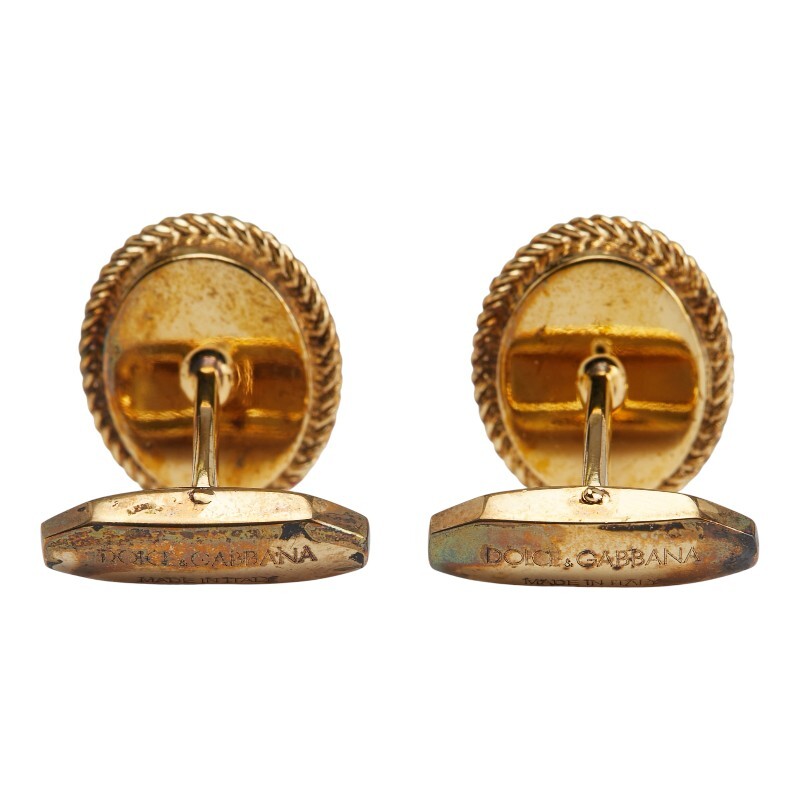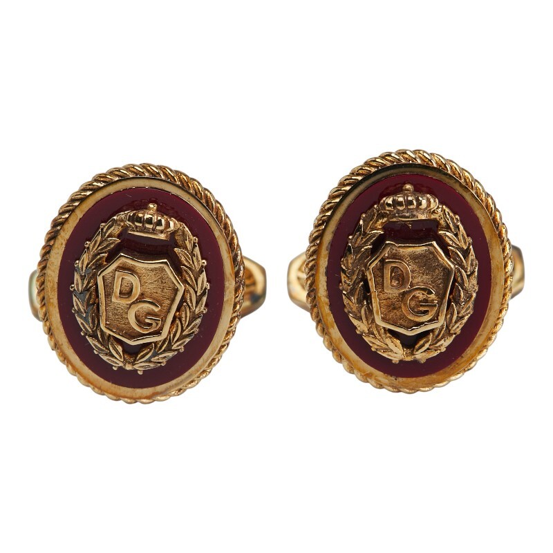 ドルチェアンドガッバーナ DGロゴ オーバル モチーフ カフス ゴールド レッド メッキ メンズ DOLCE&GABBANA 【中古】