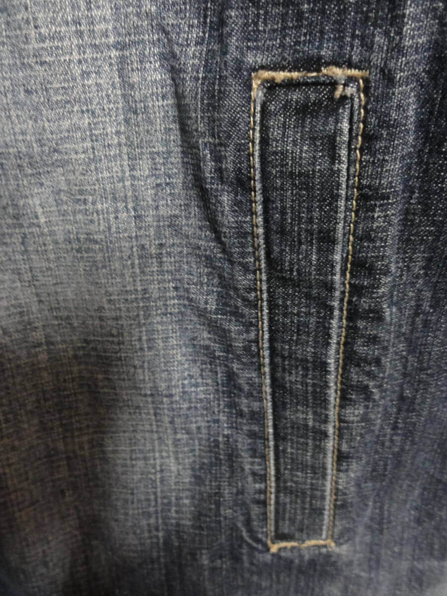 ダメージ加工系デニム素材ブルゾンの中古品、古着としての程度は、全体的には並程度位(個人的主観です)かと思いますが、あくまで中古品及び素材・製法・染色等の性質上、使用感、シワ、部分的傷汚れ(見落とし含む)、色褪せ等はあるかと思いますので、ダメージ加工系製品の使用感~ダメージ感を伴う中古品・古着をお好きかお探しの方、受け入れ可能な方のみ、超特大レアモデルの現状販売中古品をご了承のうえご入札下さい。