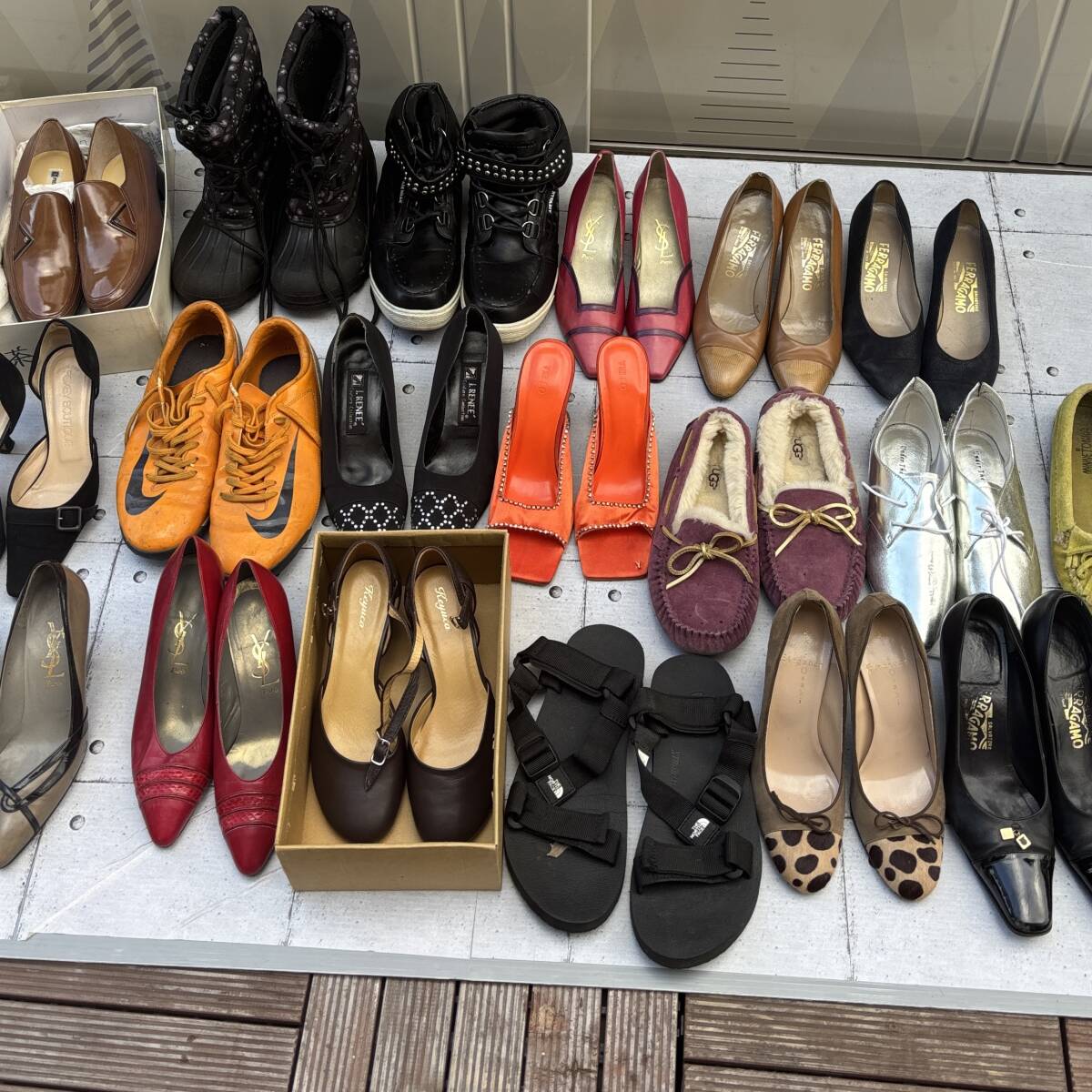 レディース 革靴  パンプス ブーツ スリッパ  ノースフェイス イブサンローラン フェラガモ UGG ほか 計20足 まとめて セット