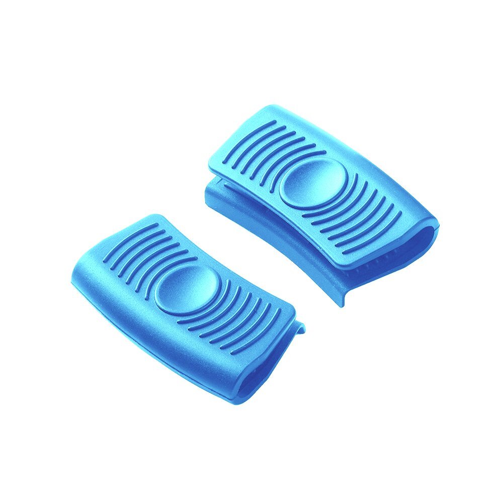 ◆シリコン鍋つかみ2個セット フタつまみ 耐熱 洗える 滑り止め加工 火傷防止 防水 撥水 キッチングッズ お手入れ簡単 シンプル クリップ型 鍋料理やオーブン料理に【ブルー2個】SNBT02S
