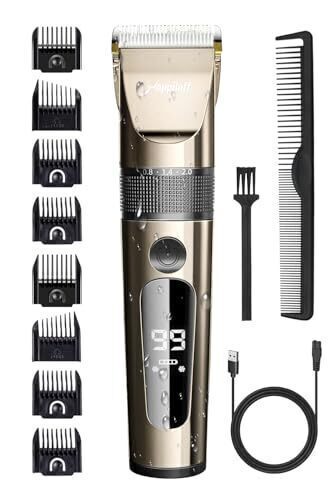 Happilaff 電動バリカン バリカン メンズ IPX7防水 5段階調節可能 充電式 led電量ディスプレイ パワフル ヘアク