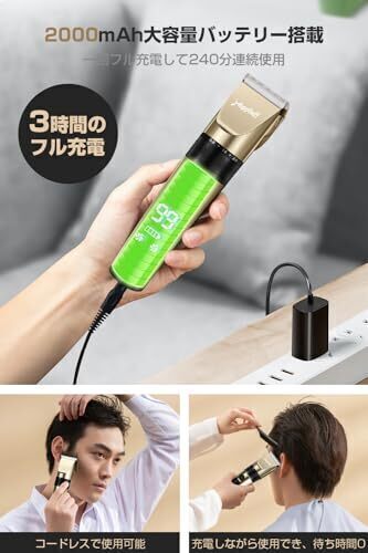 • 【大容量バッテリー&充電しながら使用】大容量バッテリーが搭載され、大容量2000mAhバッテリー搭載され、3時間のフル充電で220分連続使用可能です。一回充電するだけで数回使える、家庭用はもちろん、コンパクトなサイズは小さい収納バッグに入れて出張先旅行先での使用も便利です。100V-240Vの定格電圧で海外でも利用可能です。コードレス式で、万が一充電を忘れた場合、偶に付属の充電ケーブルに接続し充電しながら使用可能。※電量表示は2桁の数字しか示さない、99はフル充電を示す。