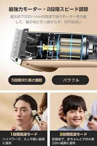 • 【切れ味抜群&肌を傷つけない】刃の先端は良質で繊細な産毛までしっかりカットできるセラミックの可動刃と錆びないステンレススチールの固定刃で構成され、カット性能が抜群。刃はチタン合金製とセラミック製の二重構造で、錆びることなく、安全安心なR面取り刃デザイン、お子様の繊細な肌に傷つかない。刃は自動研磨システムで、切れ味が長持ち、髪をひっかかずにスムーズにヘアカットできる。うぶ毛もきれいにカットでき、髪の毛の量が多い方にも快適で便利に使える。※耳や肌に凹凸がある部分(コブ、傷、できものなど)に直接刃を当てない。ご注意 :潤滑オイルが付属されていませんが、ミシン油、ベビーオイル、つばき 油で代用可能です、刃の部分に 1滴ずつさして、刃が更に滑らかでシャープになります。