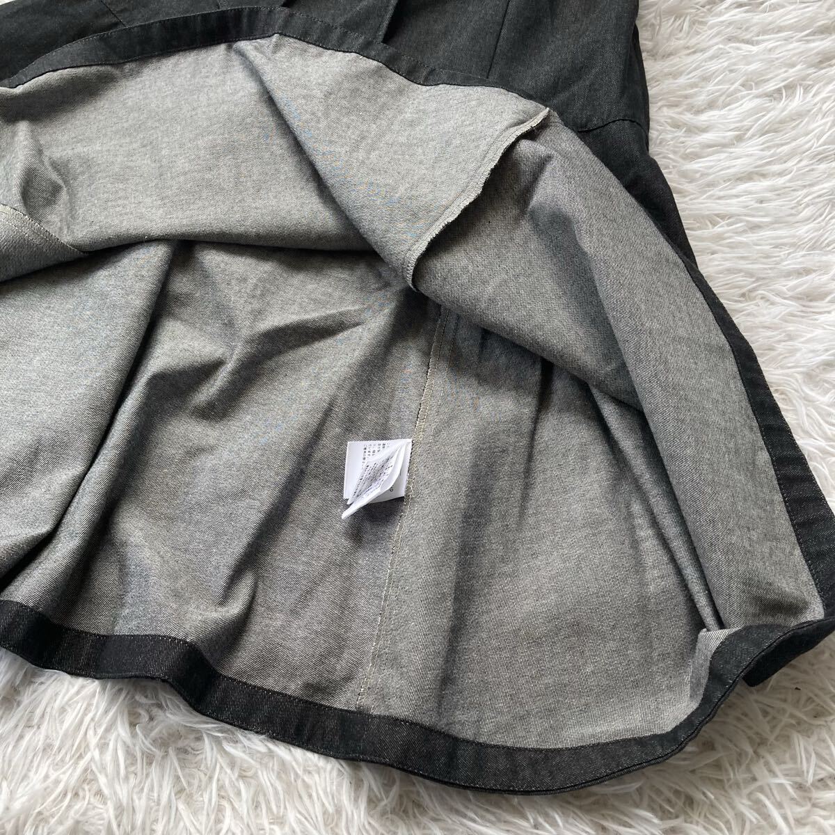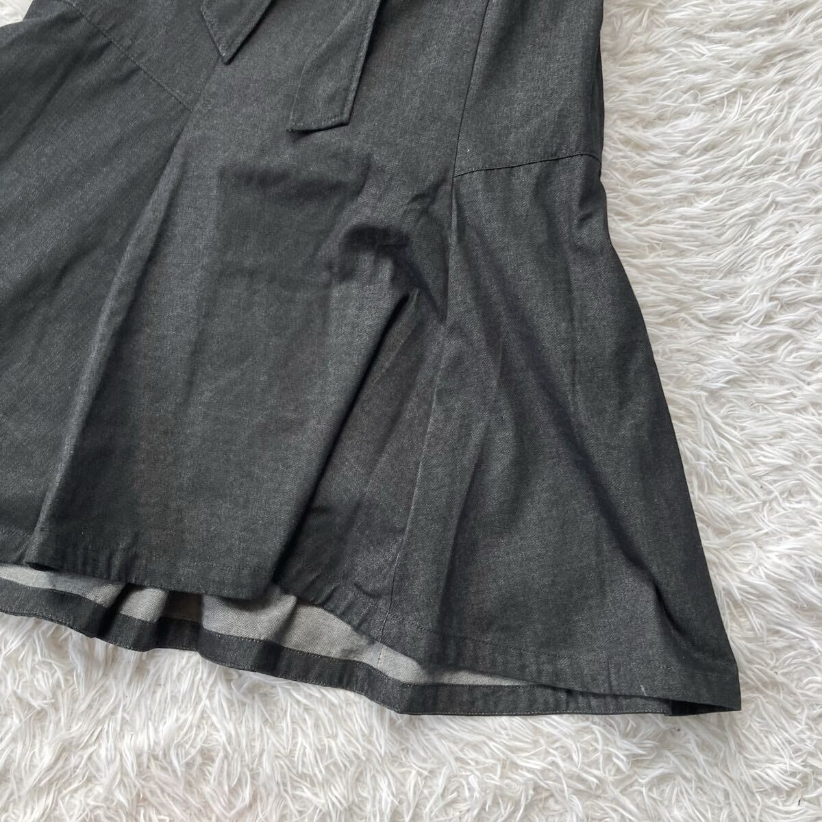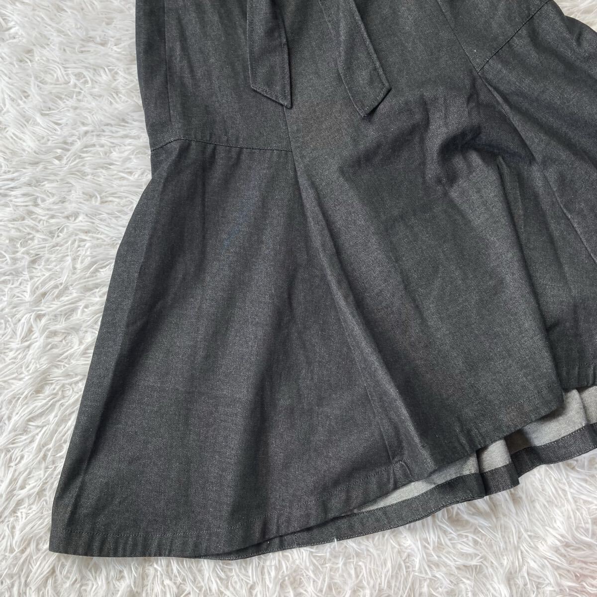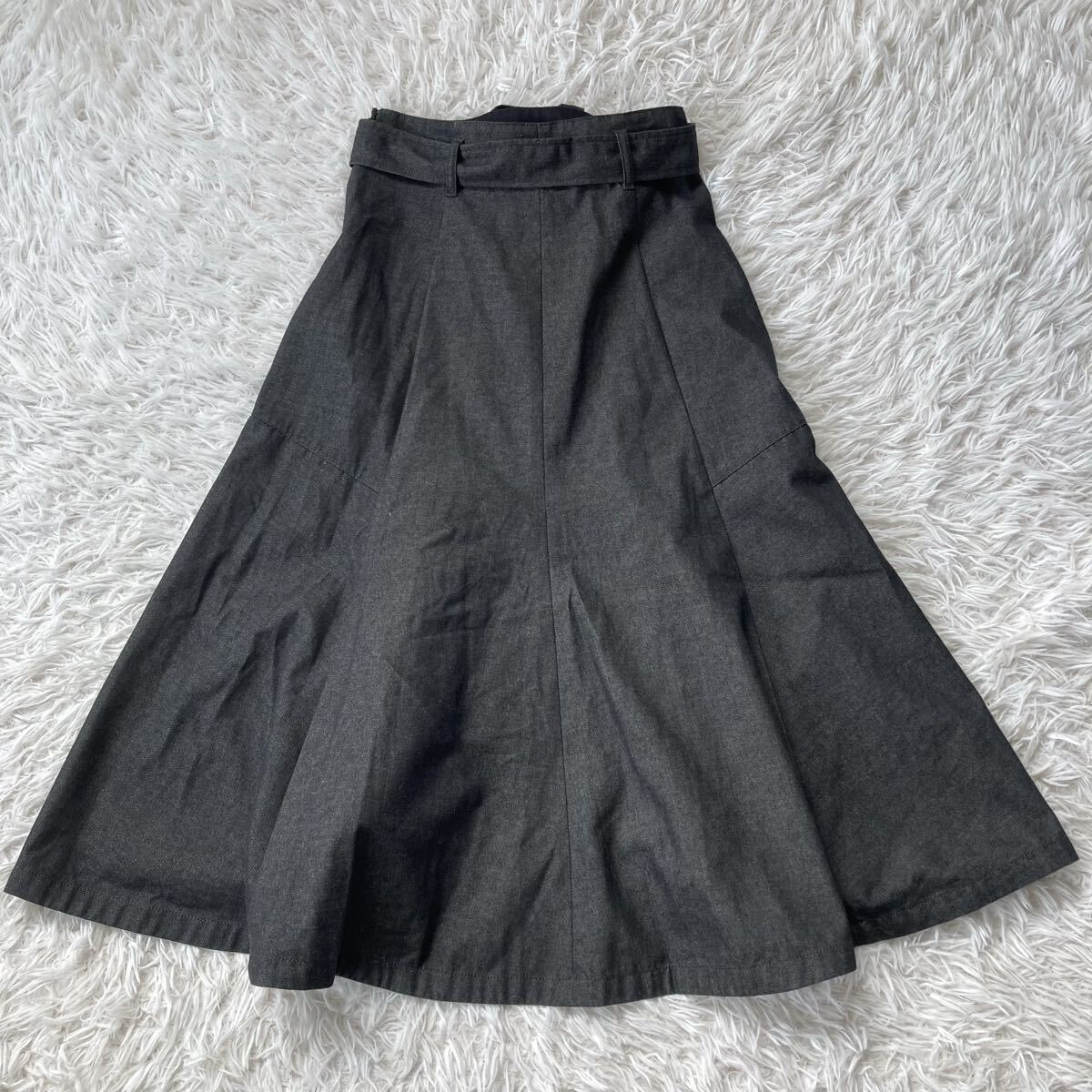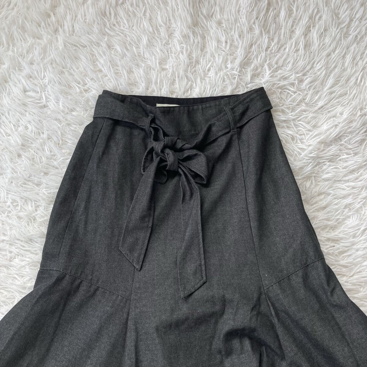 状態良 ナノユニバース フレアロングスカート リボン付き グレー