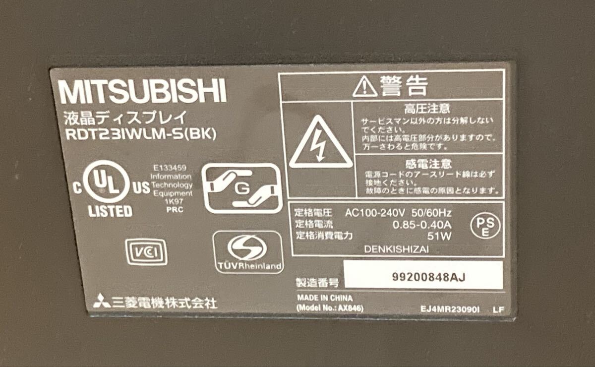三菱 MITUBISHI 23インチディスプレイ RDT231WLM-S [モニター表示確認済]【中古・訳あり品】