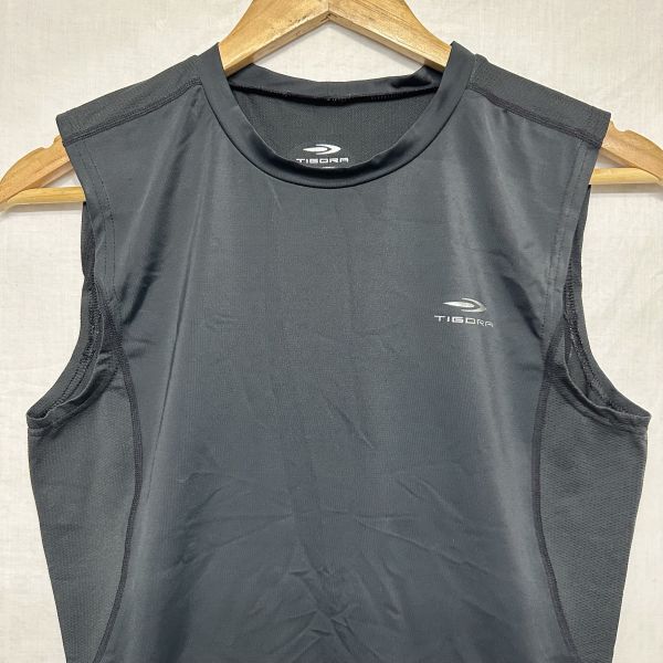 TIGORA ティゴラ ノー スリーブ タンク トップ コンプレッション インナー ウエア トレーニング フィットネス L 黒 ブラック b22496